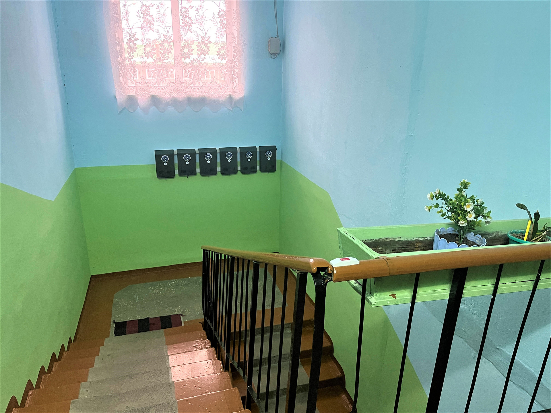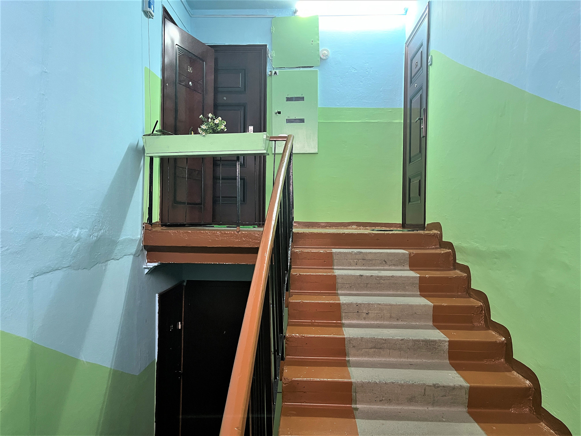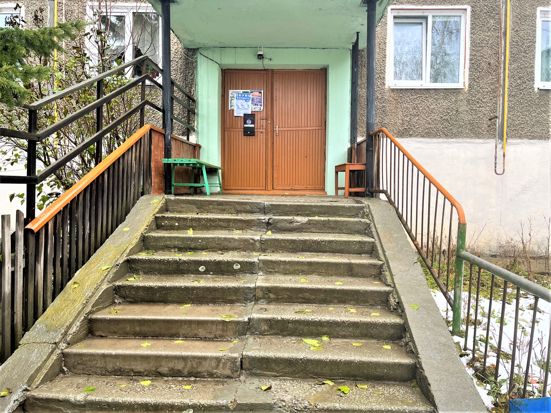 Ухоженный подъезд, домофон, видеокамера