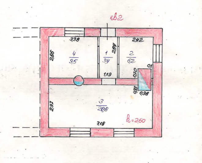 Дом кирпичный. Площадь 39.9 кв.м. Высота потолков 2.6 м. 3 комнаты 20.8 , 9.5 и 6.2 кв.м.