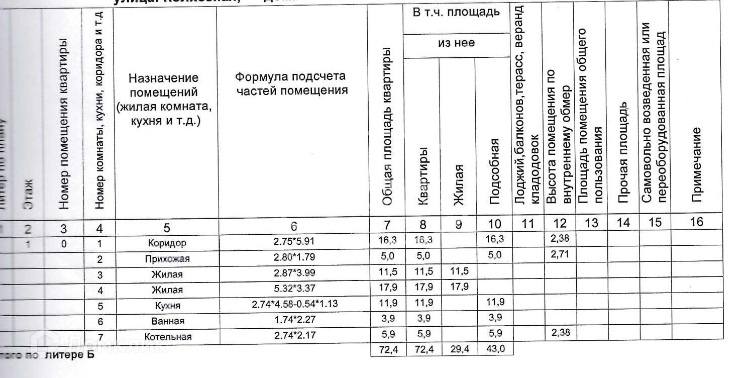 Общая площадь 72.4 м2