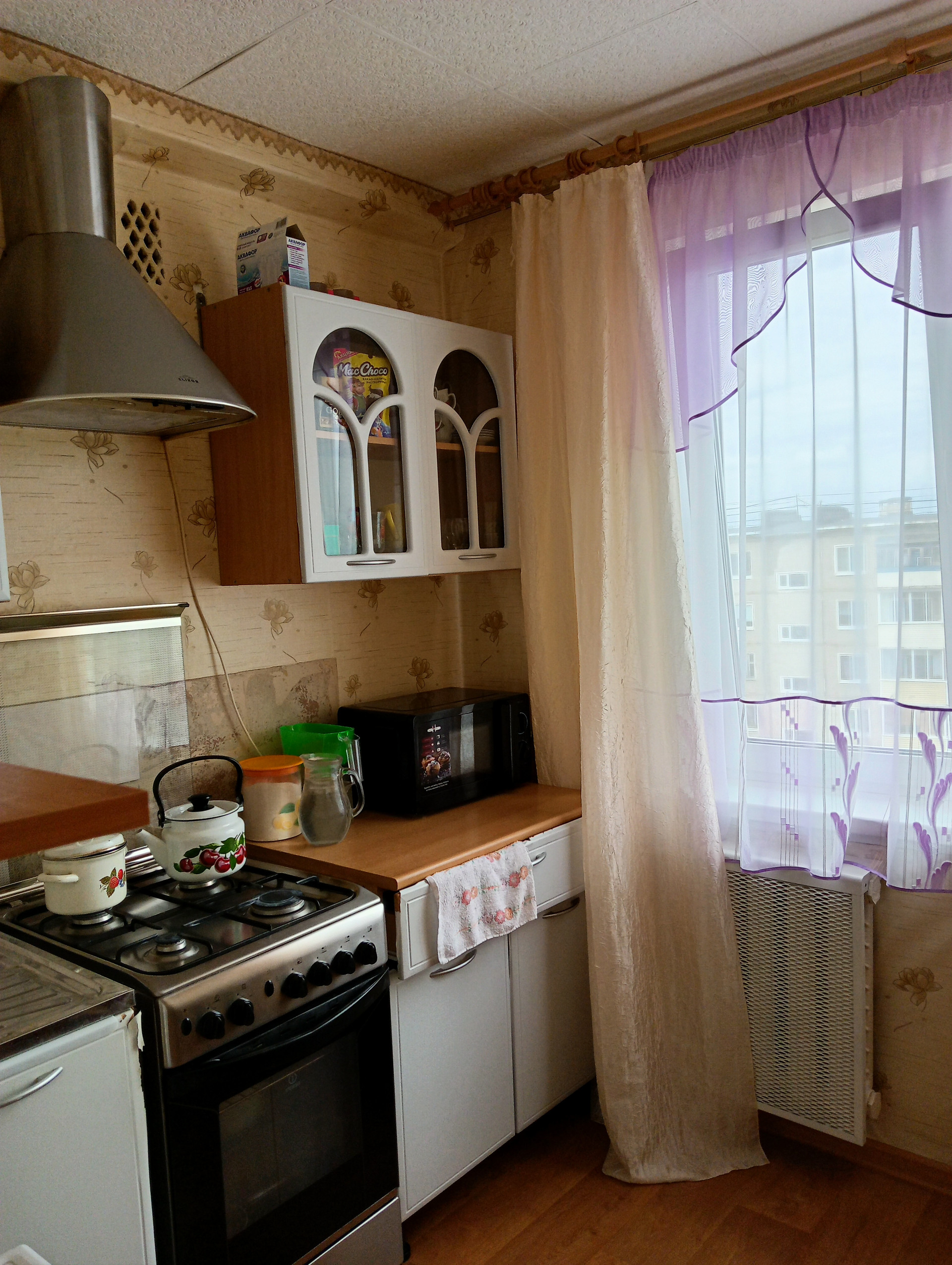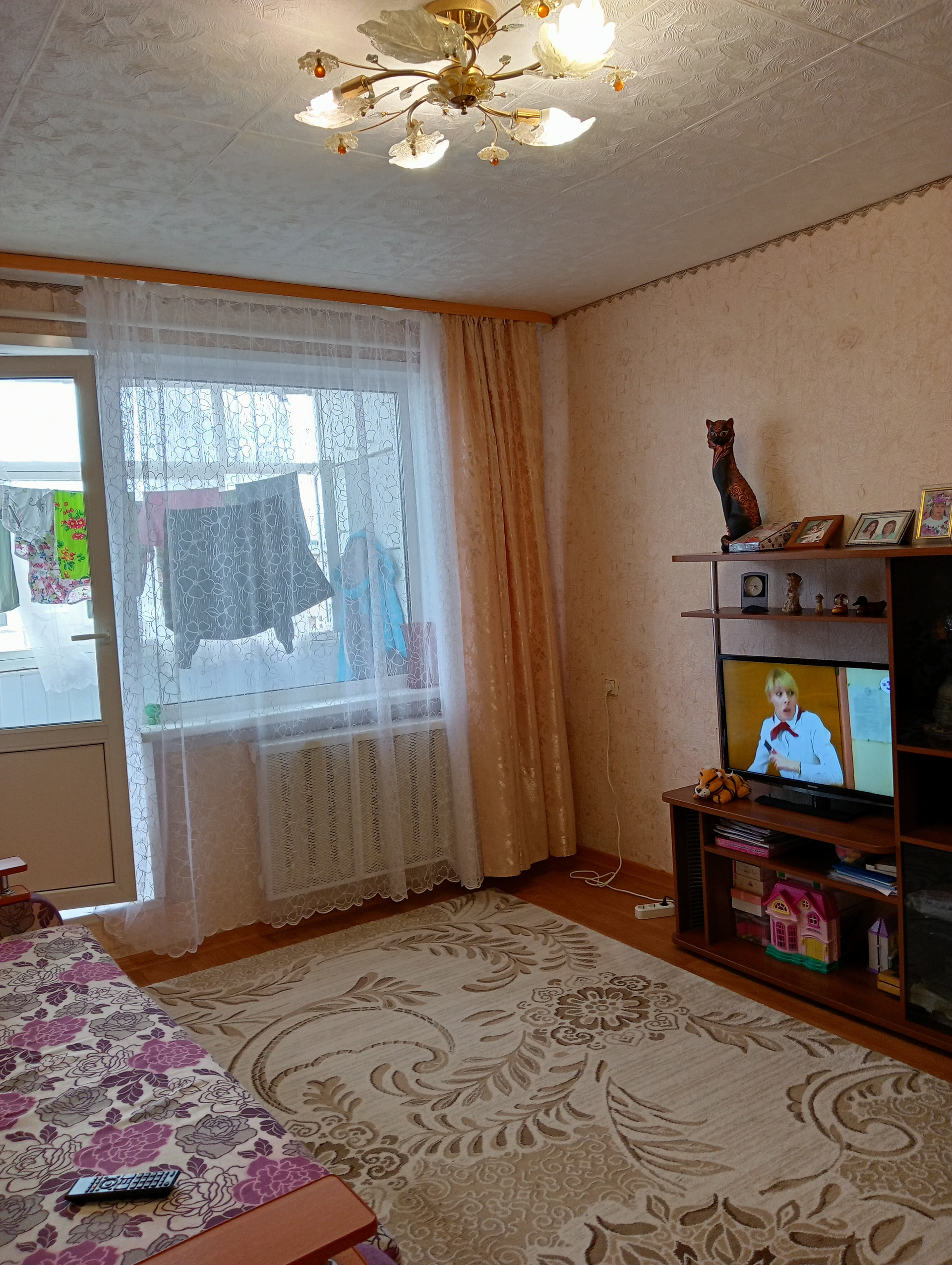 Уютная, теплая квартира. Дверь металлическая, на окнах стеклопакеты, на полу ламинат, балкон застеклен, санузел раздельный. Рядом школа, детский сад, почта, магазины.