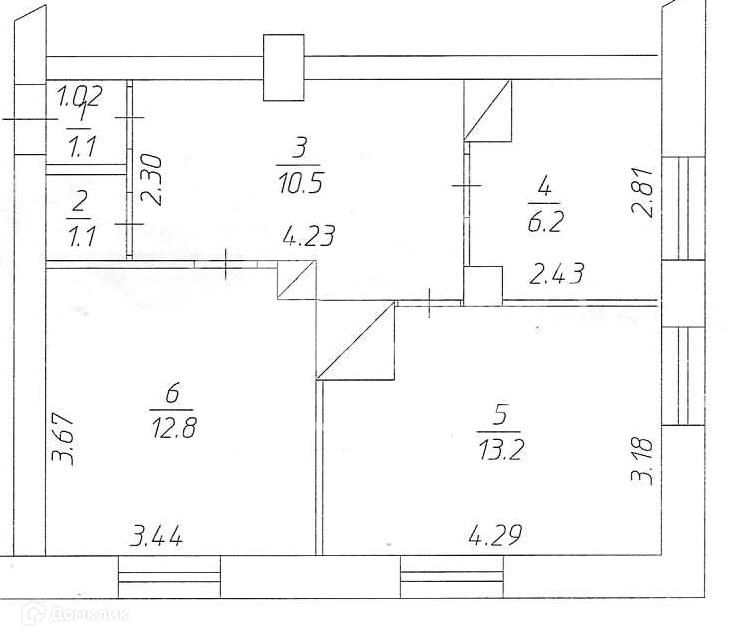 Общая площадь 44.9 м2