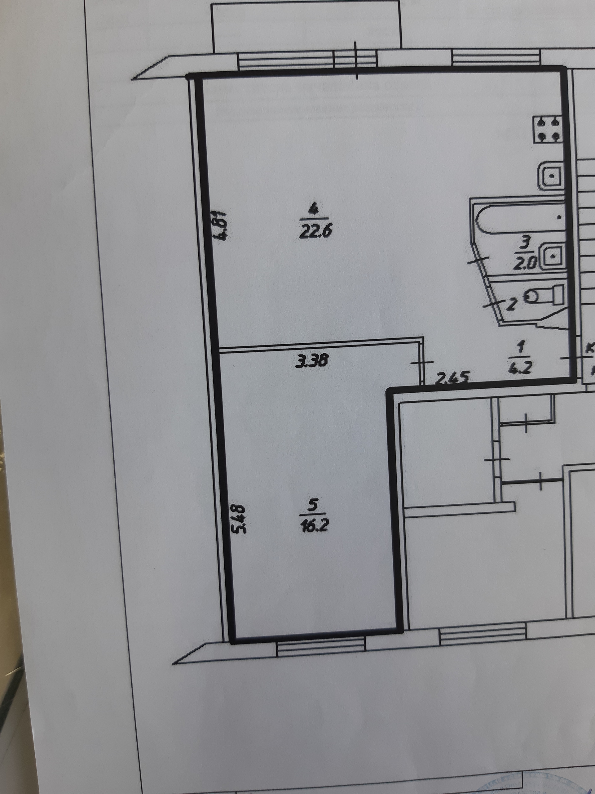 Комнаты изолированы: комната-кухня 22,6 кв.м., комната 16,2 кв.м.