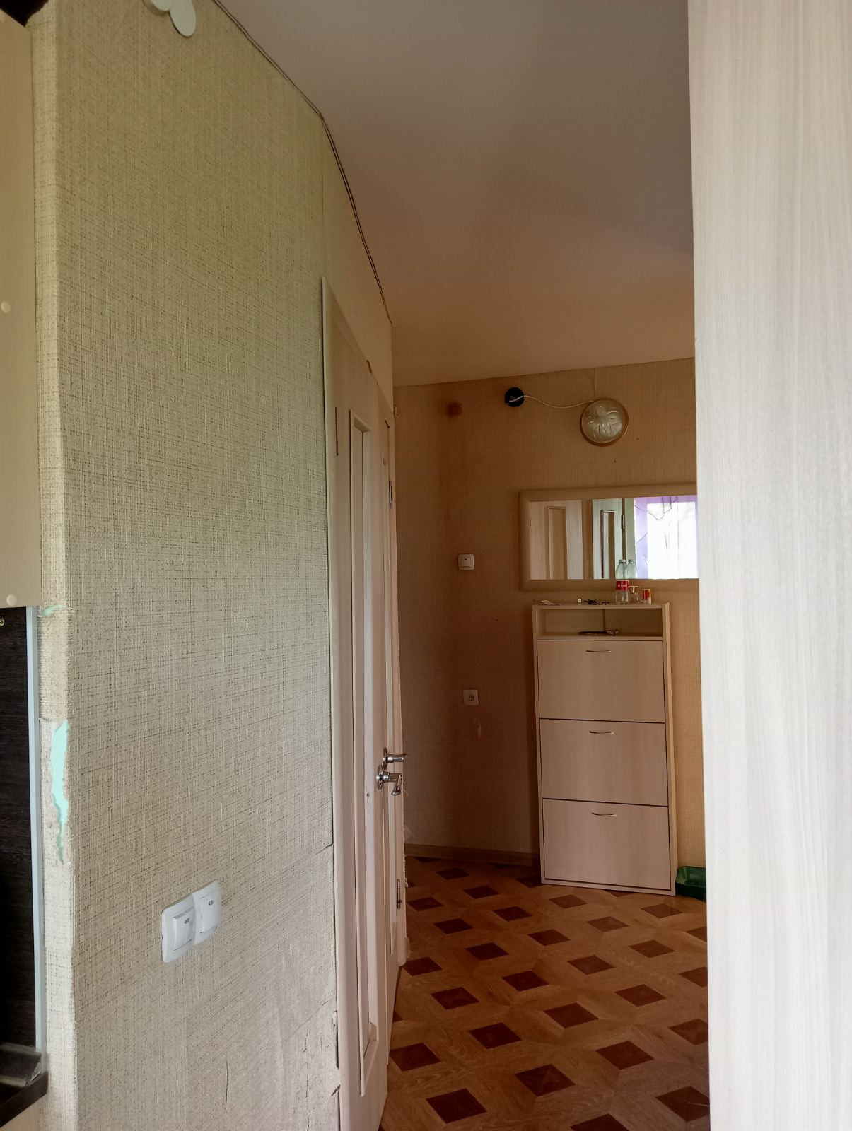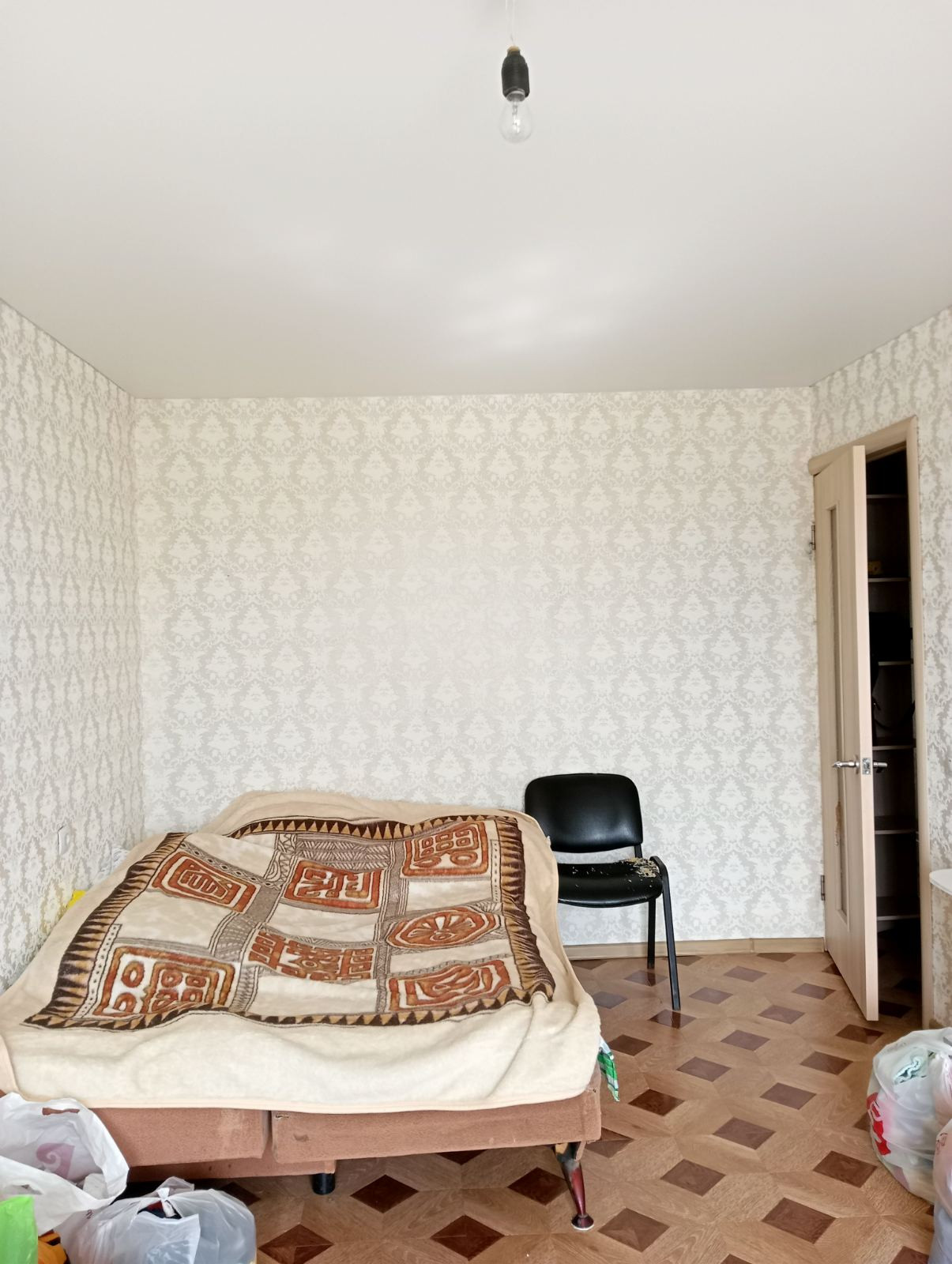 Натяжные потолки, на полу ламинат, новые межкомнатные двери.