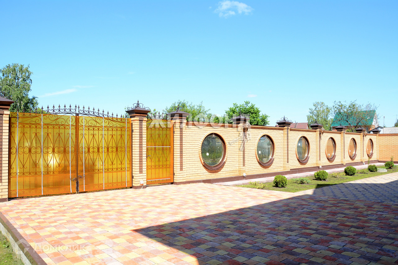 Усадьба огорожена высоким кирпичным забором на ленточном фундаменте с крулыми 3-камерными стеклопакетами (по лицевой части), кованый забор 60м, коваными воротами.