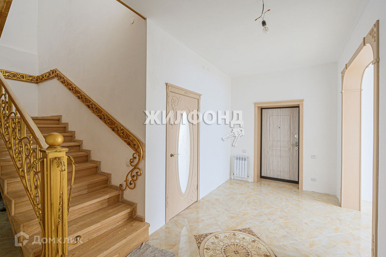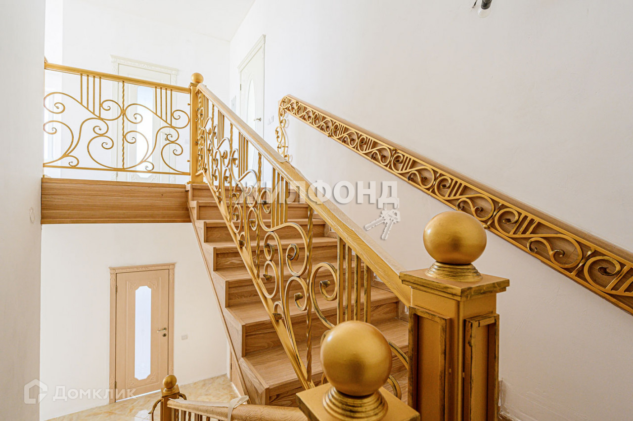 Лестничные ступени выполнены из ясеня, перила - красивейшая ковка ручной работы, дорогие входные и межкомнатные двери, напольные покрытия, плитка.