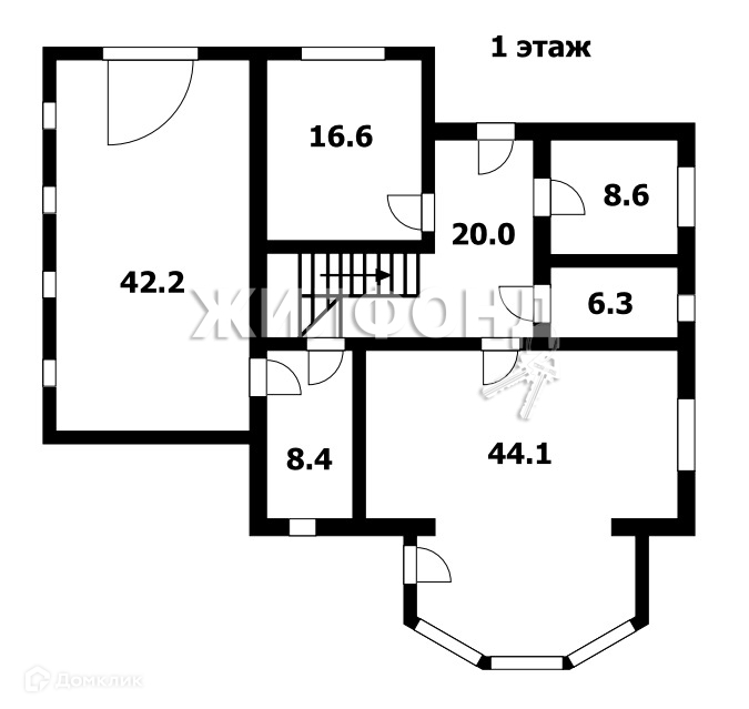 I этаж - веранда, прихожая, гостевая спальня 15кв.м., кухня-гостиная 40кв.м., санузел, лестничный холл с выходом в гараж.,