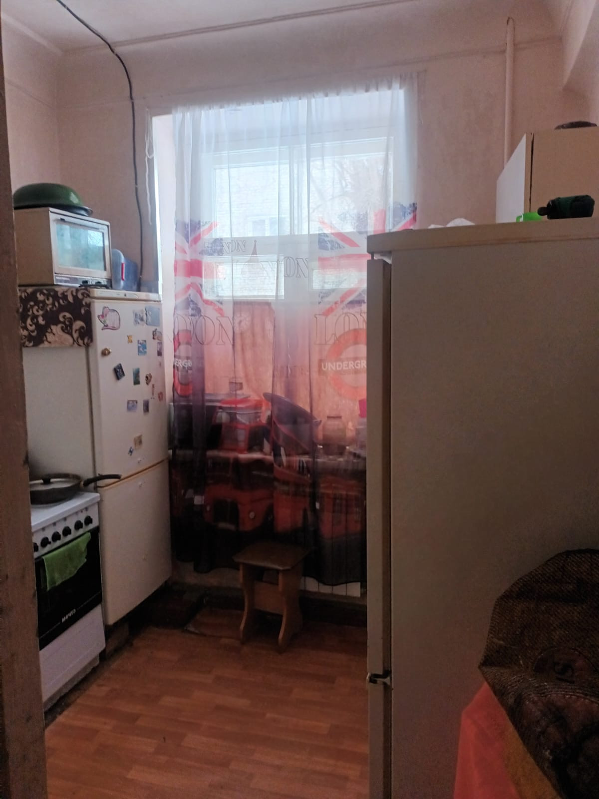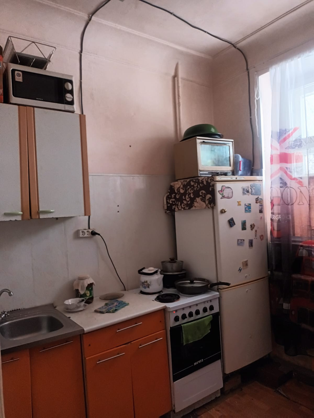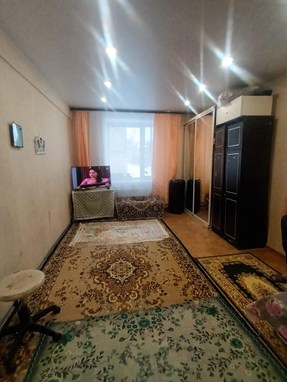Просторная, теплая комната с большим пластиковым окном, высокие потолки. Квартира на двух соседей.