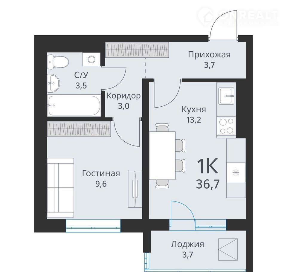 Общая площадь 36.7 м2