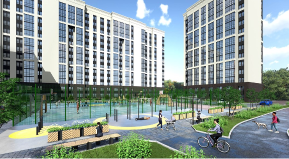 Во дворе будут построены спортивные площадки для волейбола и баскетбола с резиновым напольным покрытием, современные детские площадки, оборудованы места для выгула домашних питомцев.