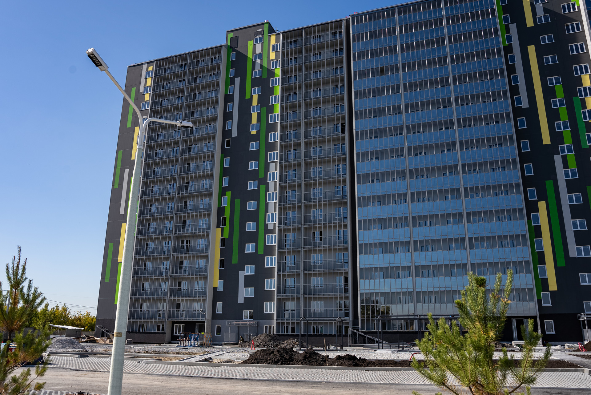 Концепция придомовой территории без машин, современные детские площадки, ландшафтный дизайн, современные входные группы.