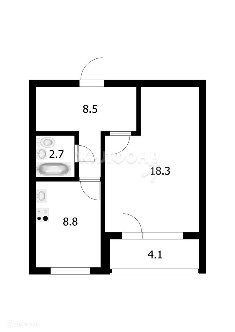 Общая площадь 38.3 м2