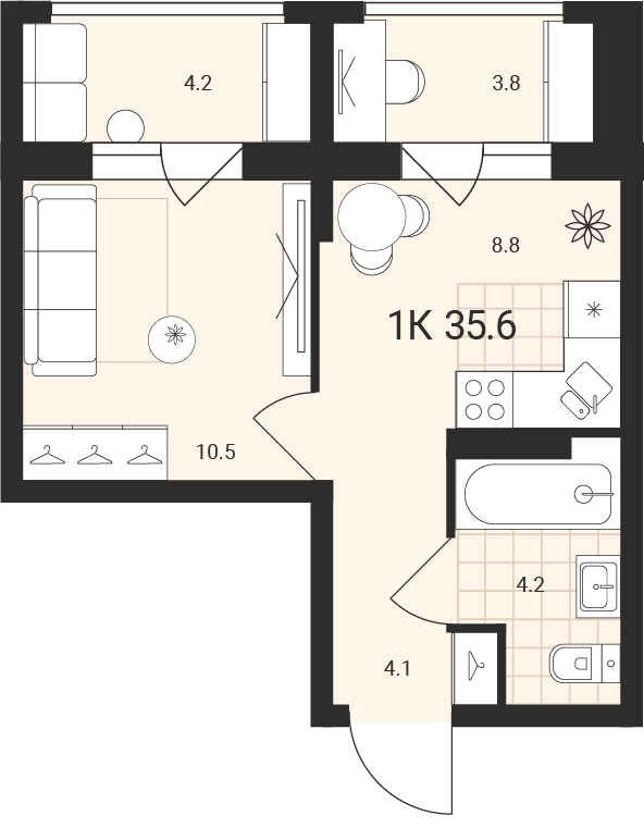 Общая площадь 35.6 м2