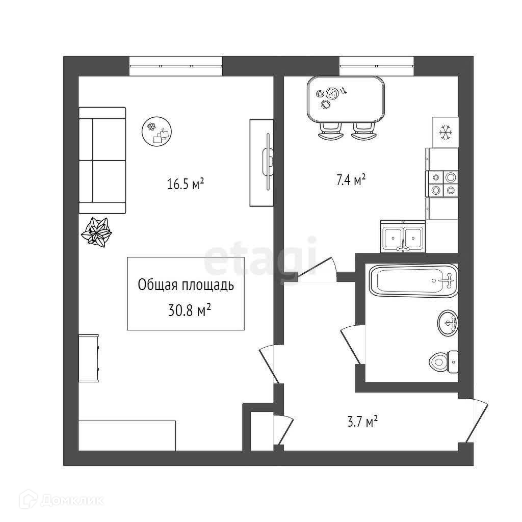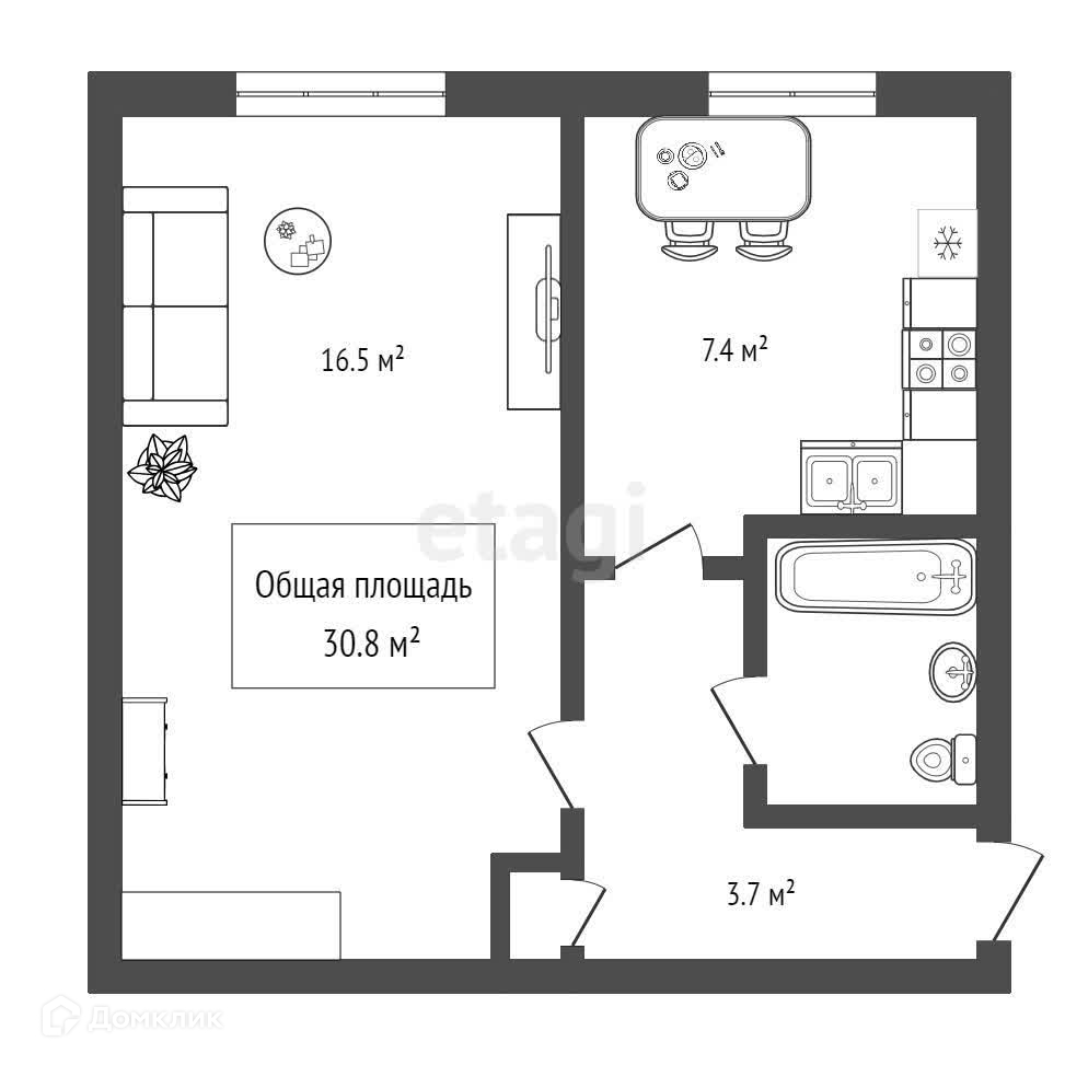 Общая площадь 30.8 м2