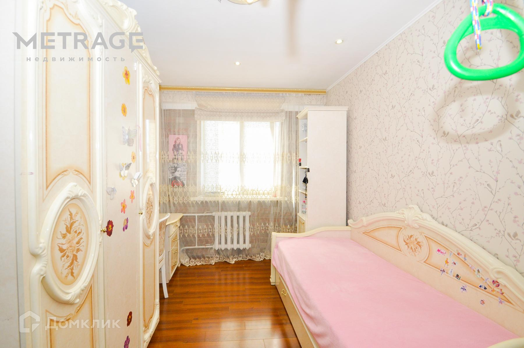 16 м2 спальня из окна которой видно школу, в которую идет ребенок