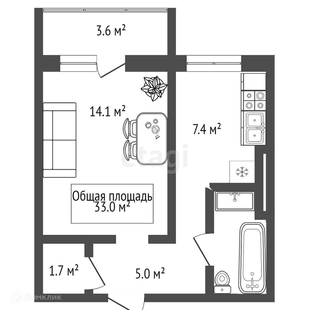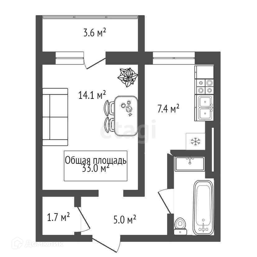 Общая площадь 33 м2