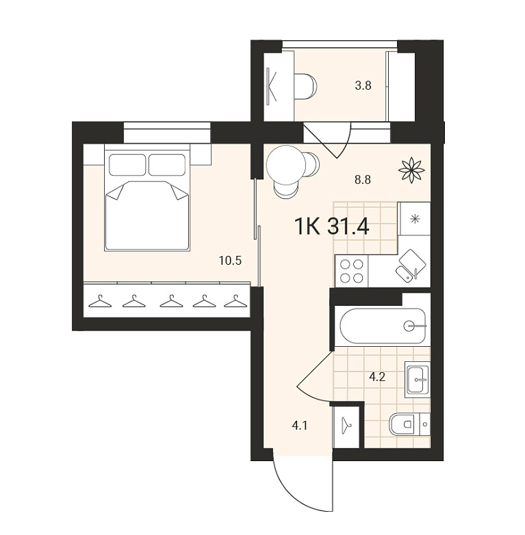 Общая площадь 31.4 м2