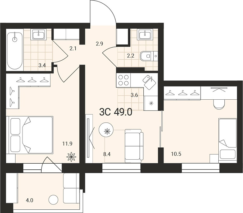 Общая площадь 49 м2