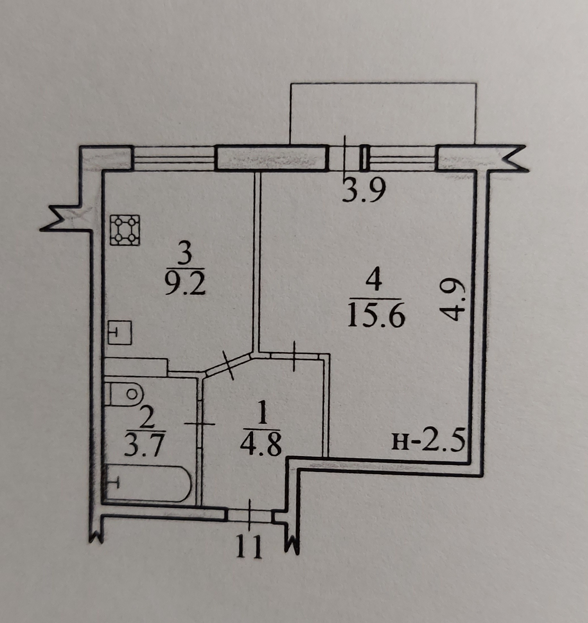 Балкон, лоджия 1 балкон
