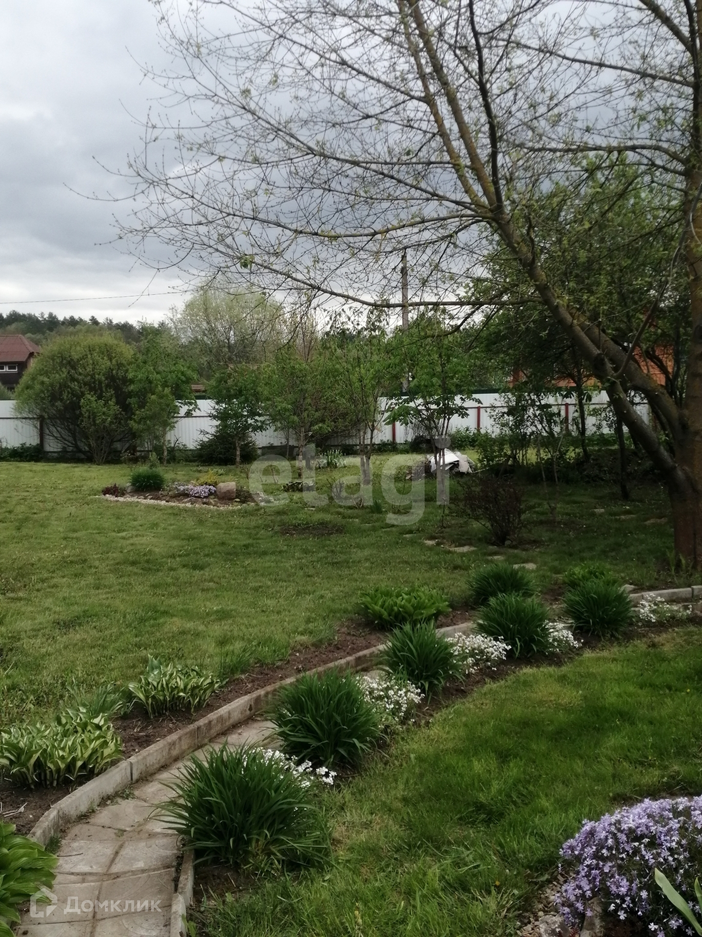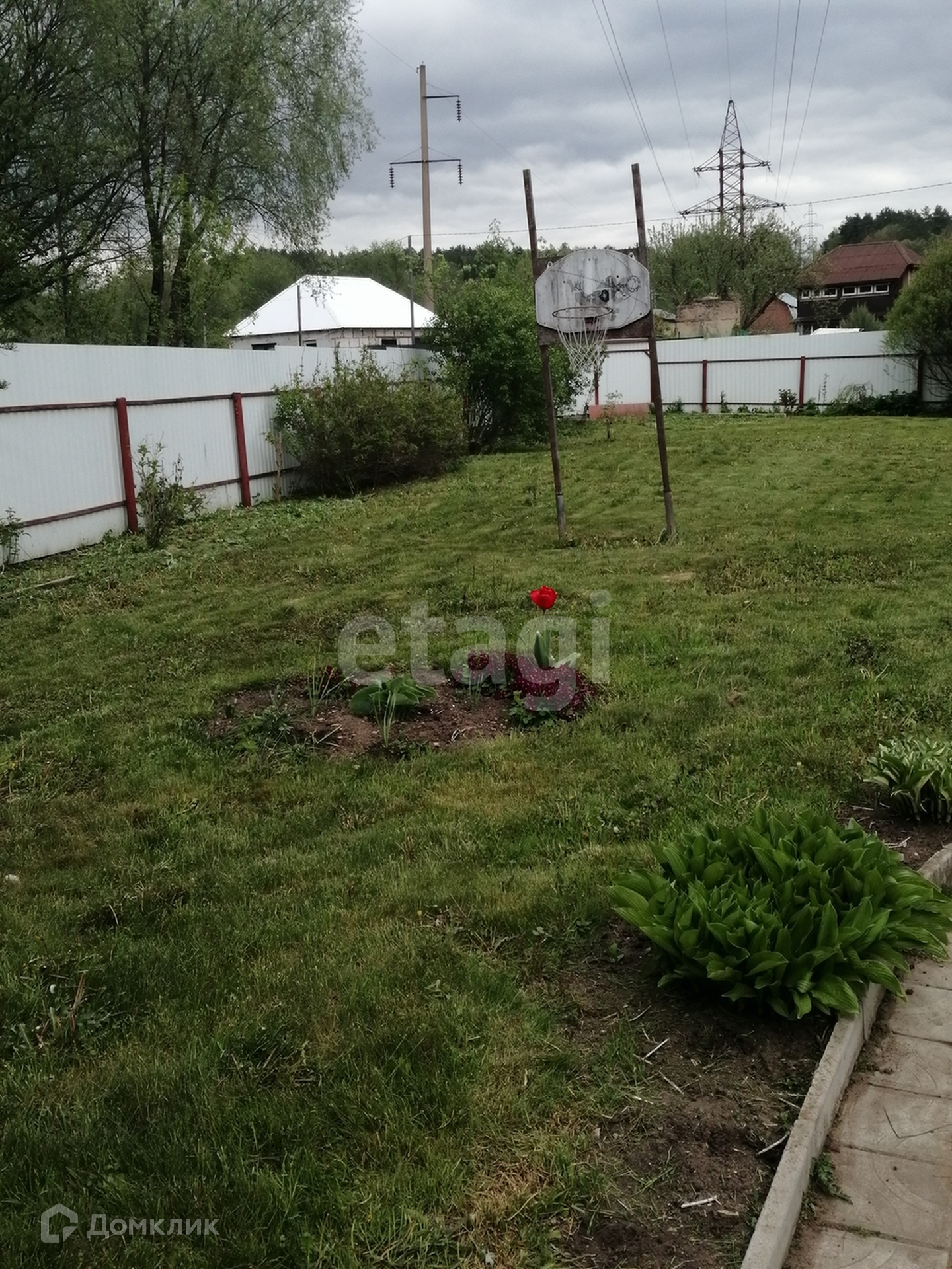 Участок огорожен металлическим забором с въездными воротами. Площадь участка позволяет парковать 2-3 автомобиля.