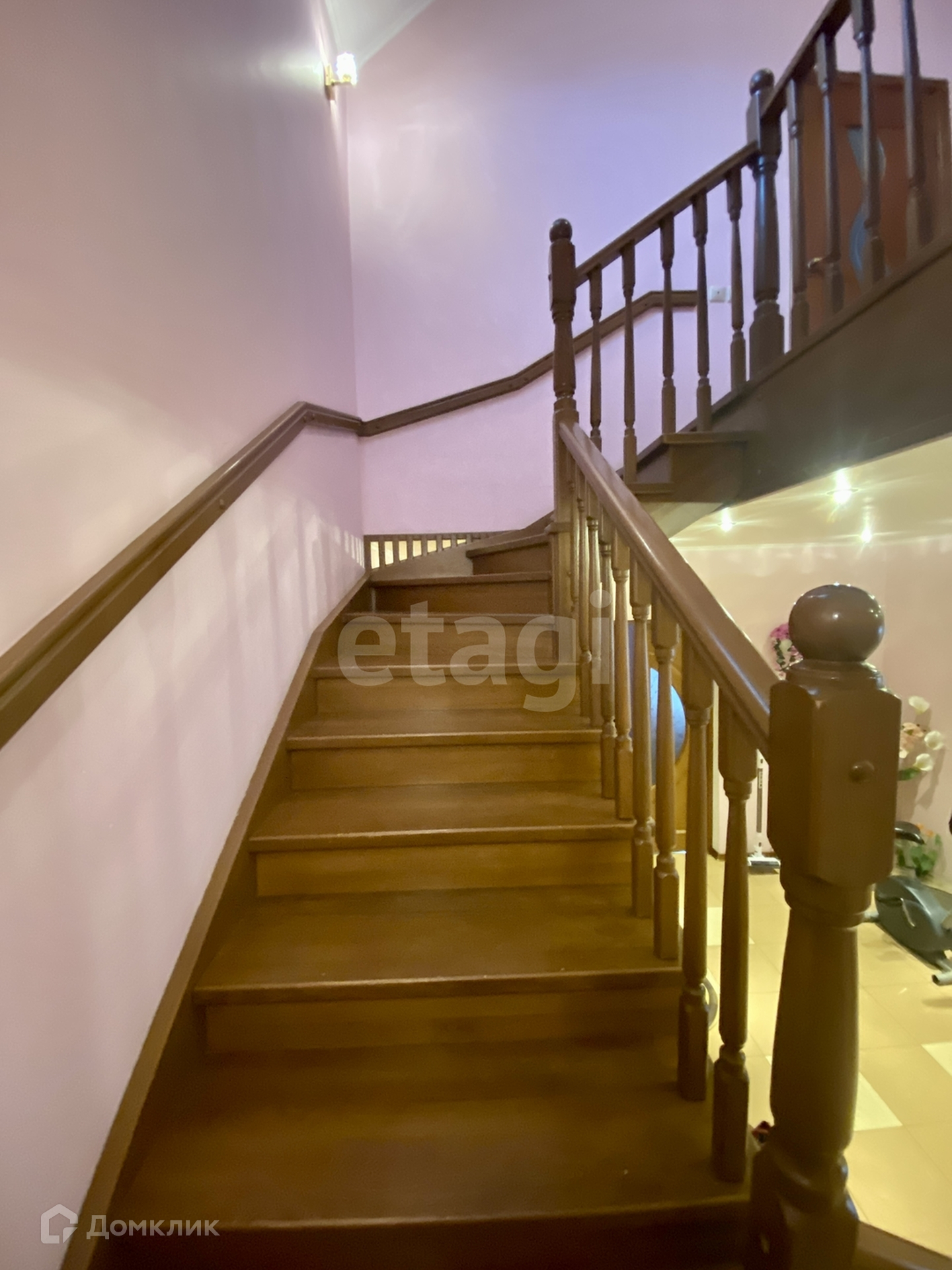 На второй этаж ведет эргономичная дубовая лестница.