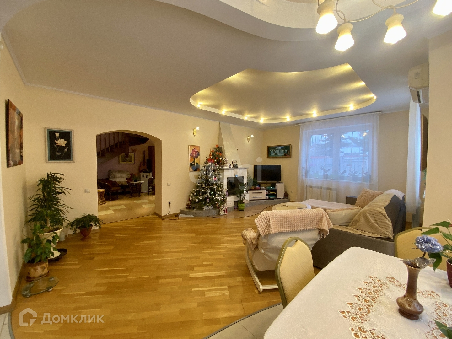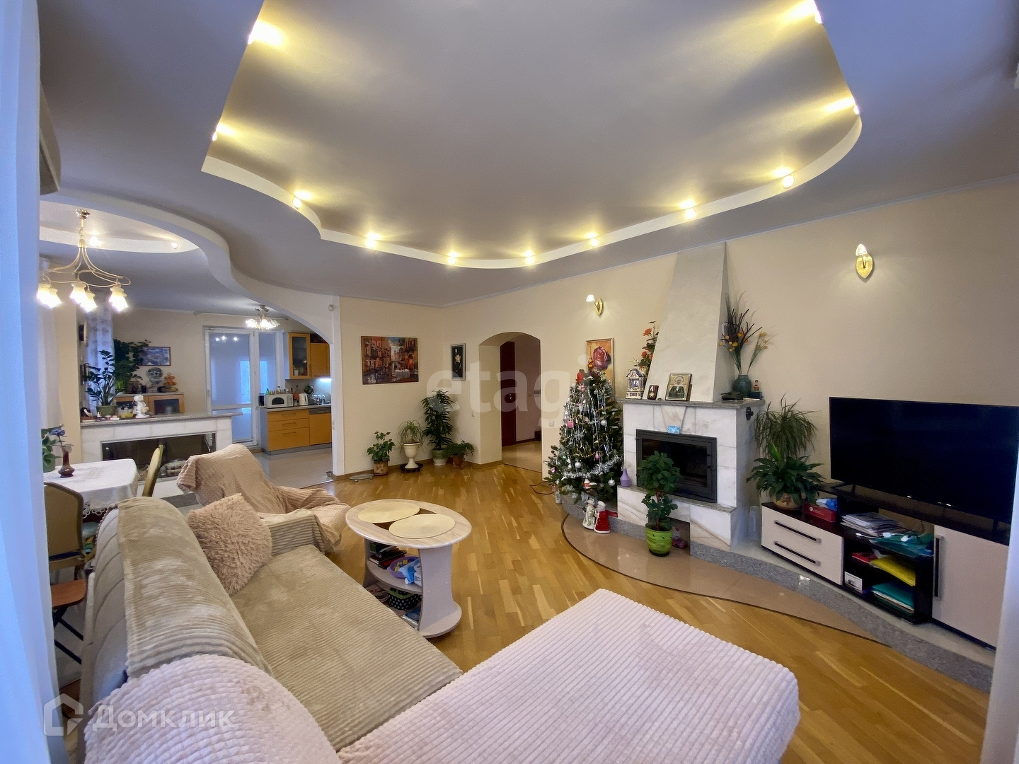 - гостиная с камином 29,7 кв. м для уютных совместных вечеров, объединена с кухней,