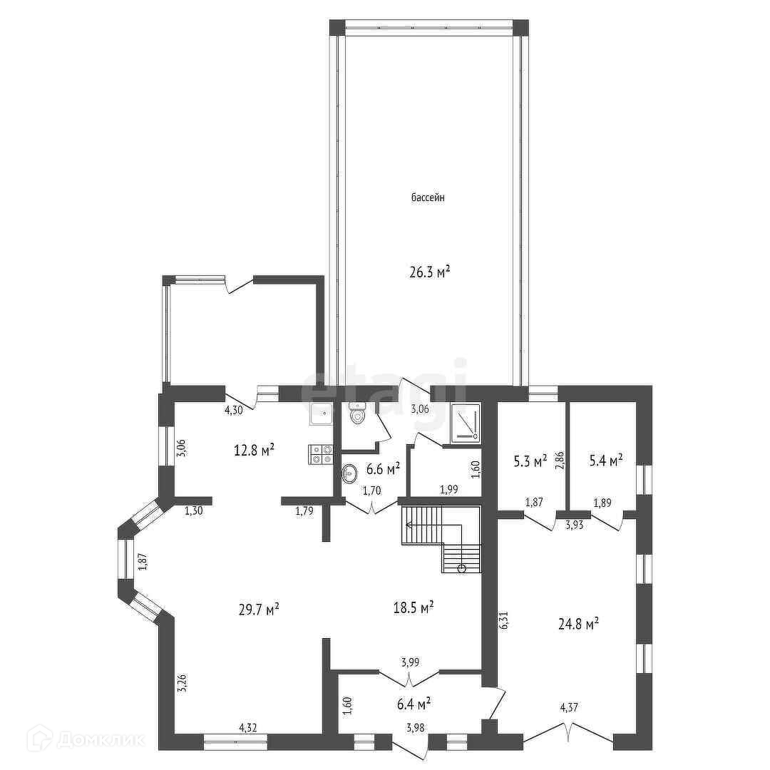 - бассейн 6,3х4 м, глубина 1,6 м,