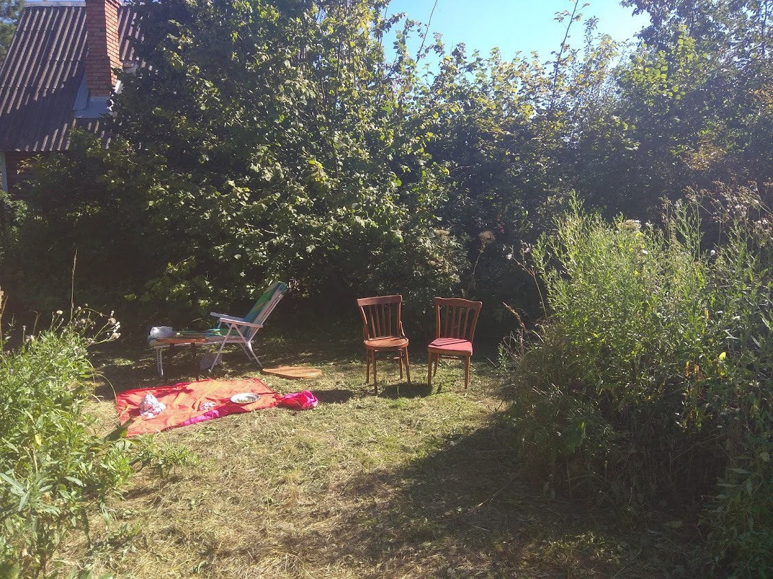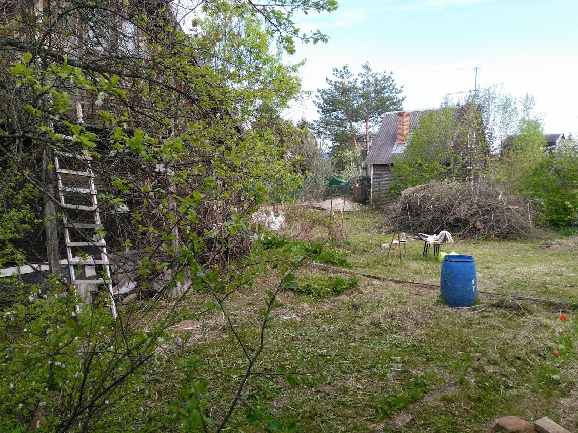 На участке плодородная почва, приятные разнообразные луговые травы, сформирован полноценный биоценоз, живая изгородь.