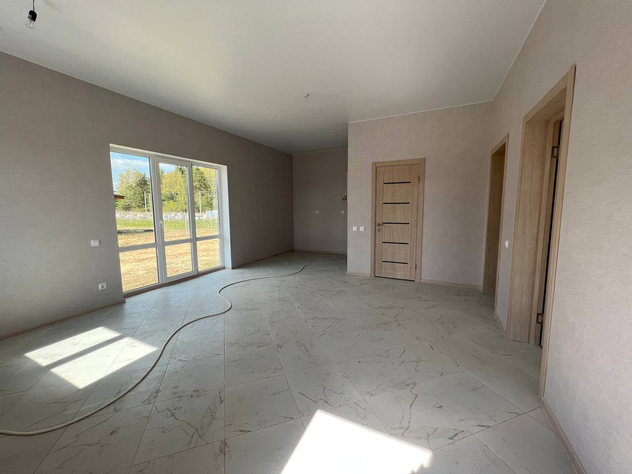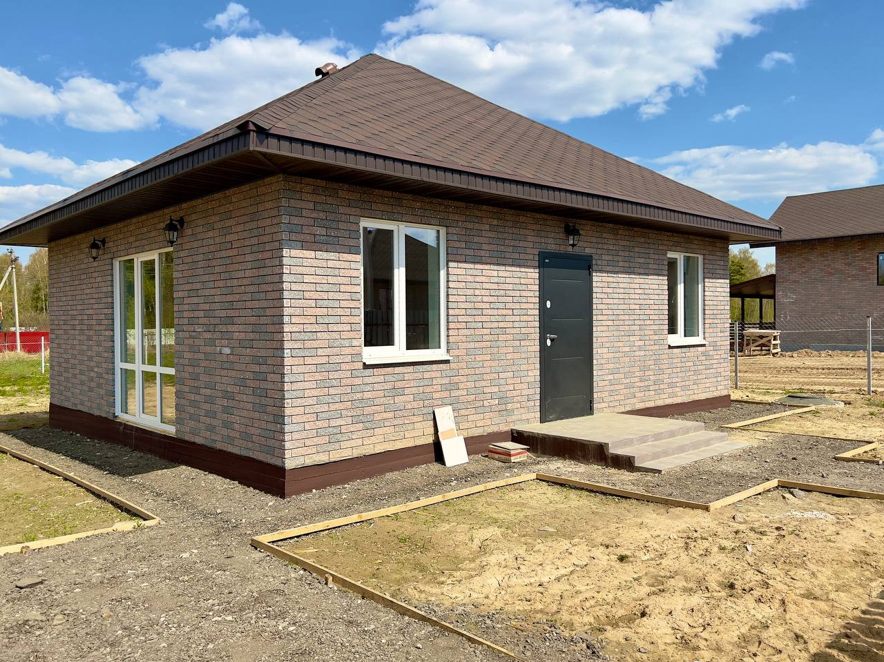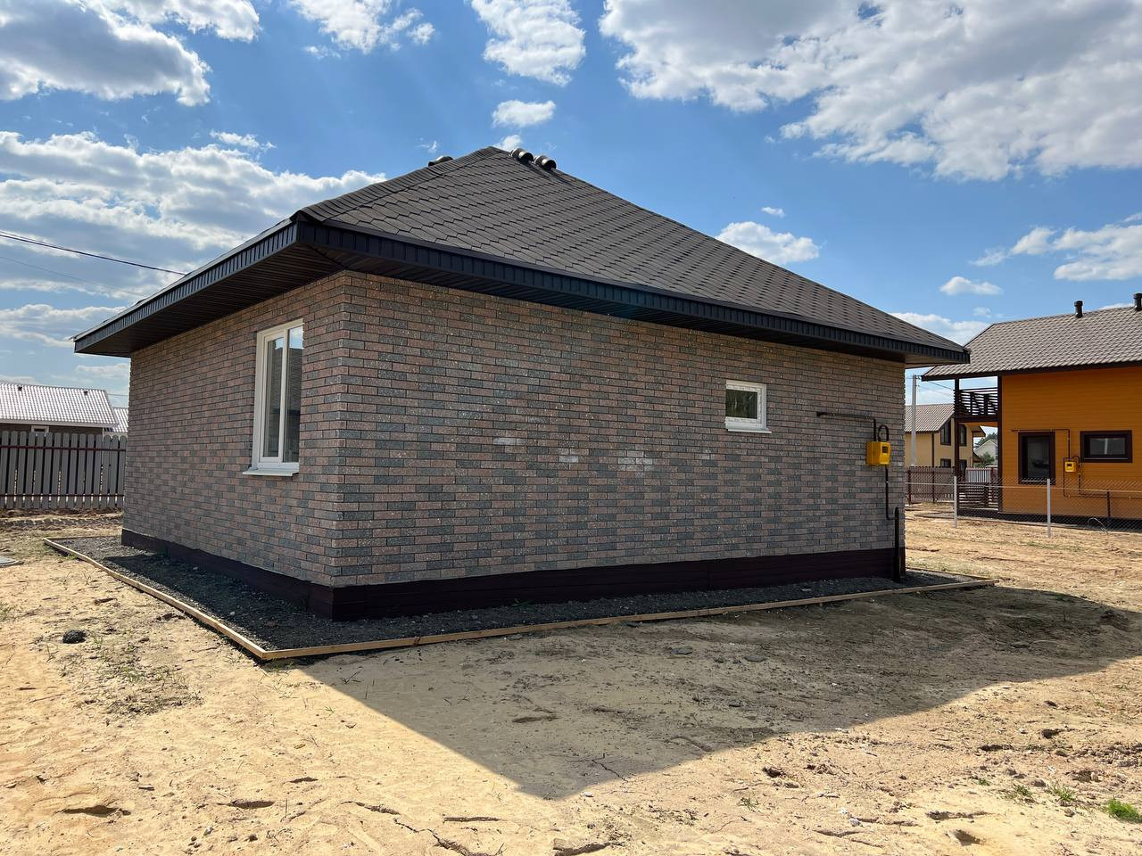 О доме: Дом с просторной кухней-гостиной построен в 2023 году. Находится в развитом коттеджном поселке, который уже активно заселяется дружными соседями!)