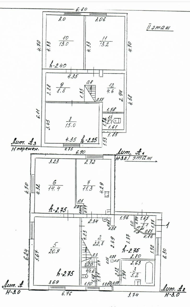 Второй этаж - три изолированные спальни (15-13,2-13) кв.м и сан.узел.