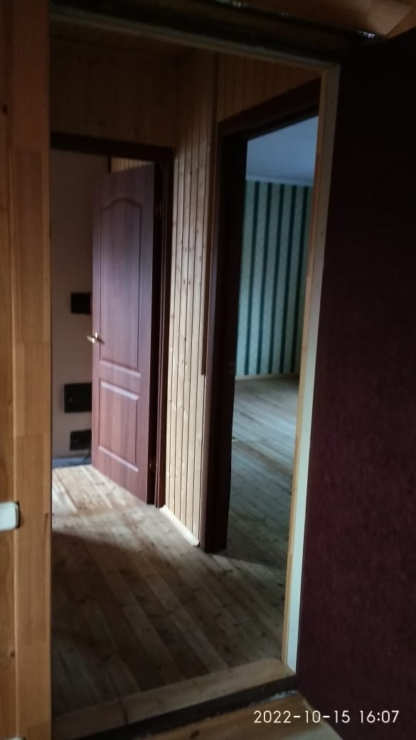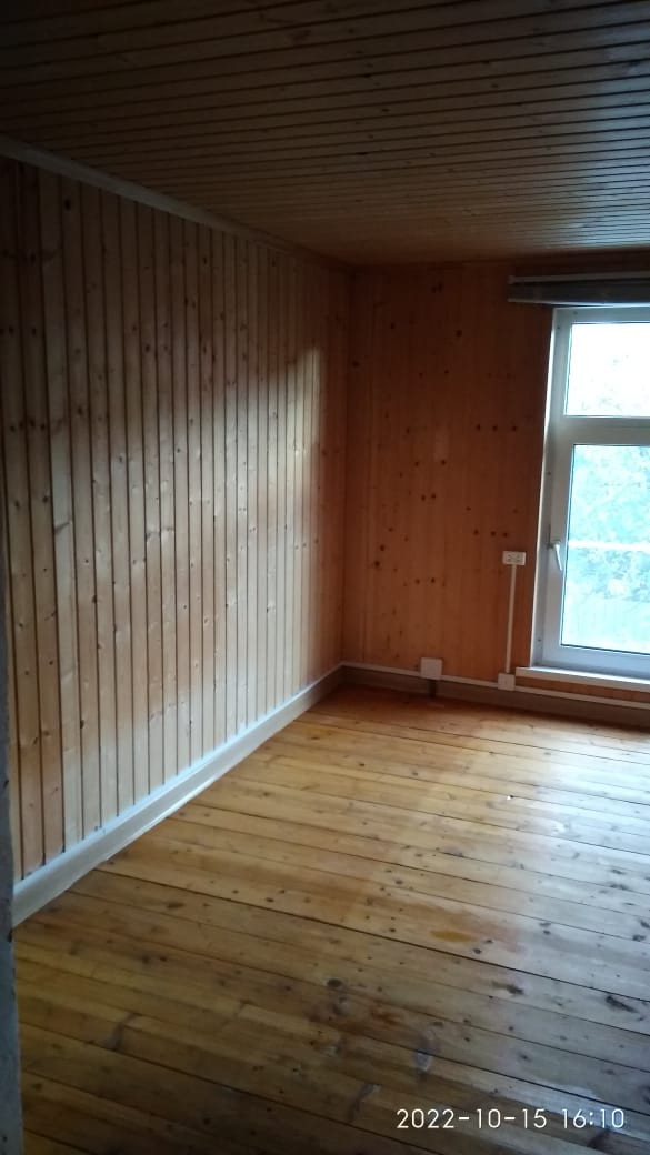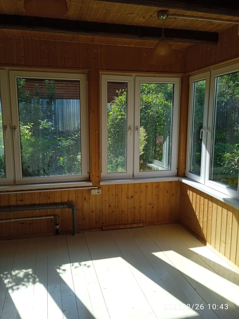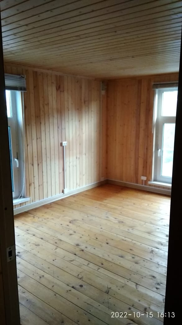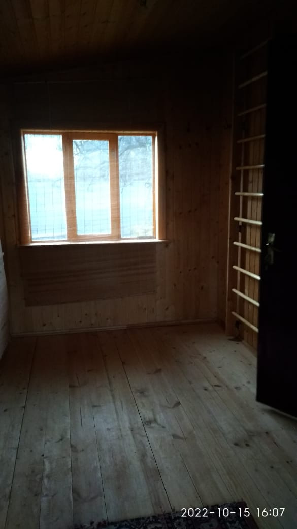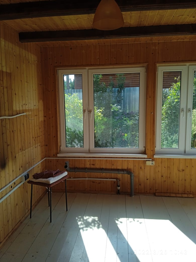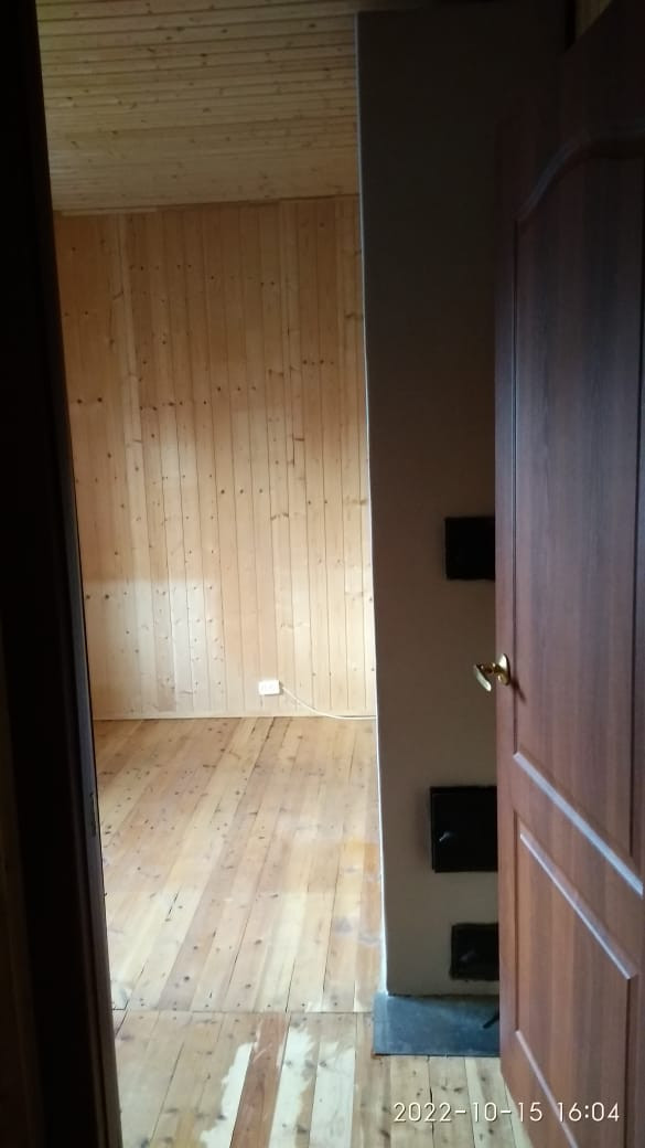 Комната с печкой небольшая, полностью отделана деревом (вагонкой натурального цвета), а окно в ней выходит на запад во внутренний двор. При желании, эту комнату можно свободно переоборудовать под санузел (ванна + туалет).