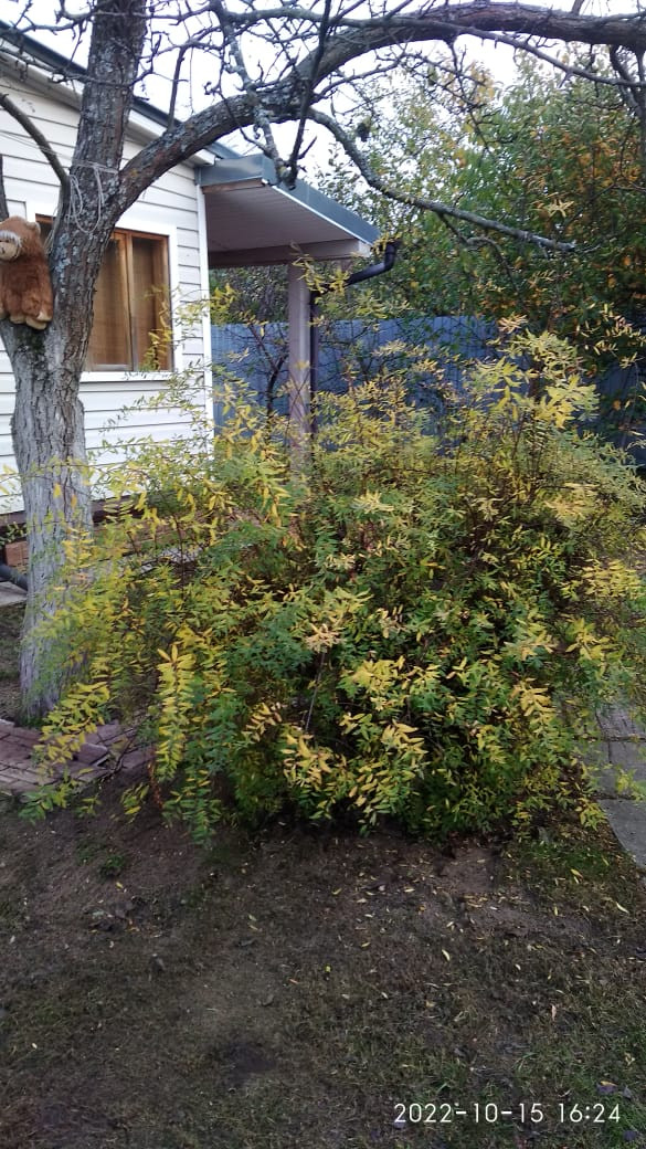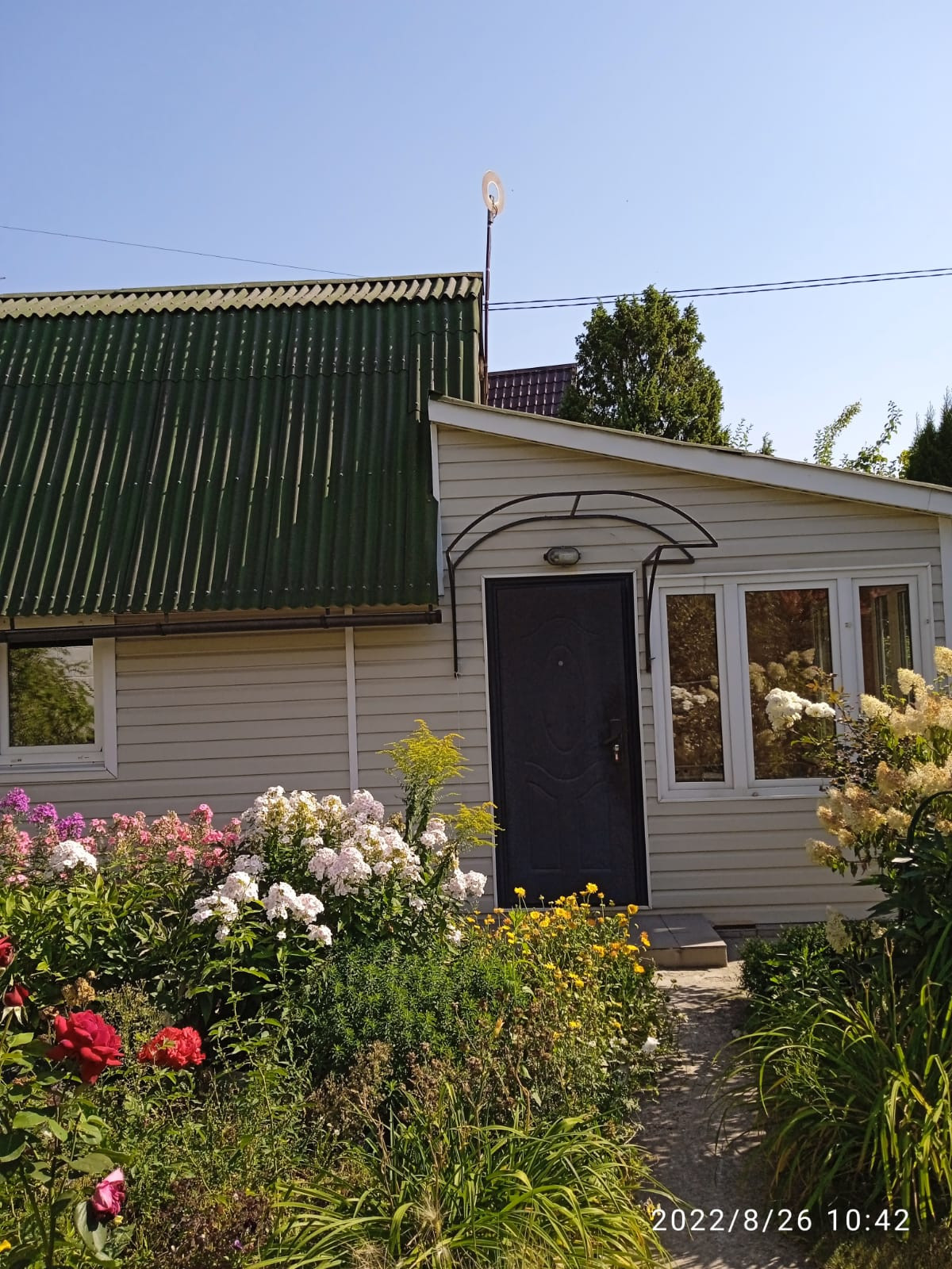 В нём растут здоровые плодовые деревья (яблони, груша) и кустарники (малина, смородина), взрослые хвойники в отличном декоративном состоянии и разнообразные многолетние цветы (розы, пионы, флоксы, гортензия метельчатая, и др.). Всю поверхность почвы устилает густая ярко зелёная трава, которая при регулярной стрижке имеет вид качественного газона. Ходить по газону надобности нет, так как повсюду уложены дорожки.