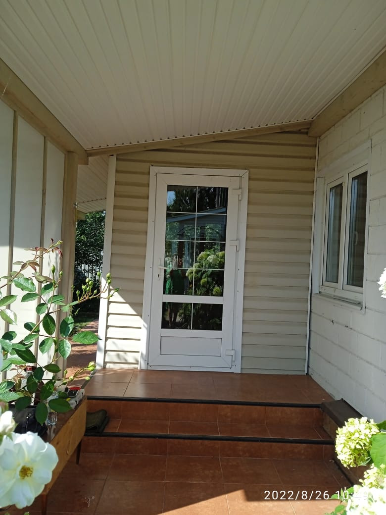 Начинается дом с просторной прихожей, отделанной деревом (вагонкой натурального цвета). Она имеет пластиковую прозрачную дверь и четыре пластиковых окна, выходящих на юго-западную сторону, а также встроенную шведскую деревянную стенку, которая подходит взрослым и детям.