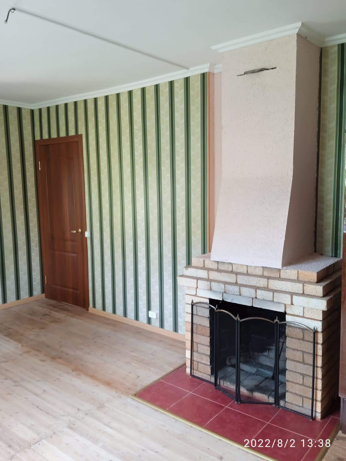 На первом этаже две комнаты. Гостинная с кирпичным камином и комната с кирпичной печкой.