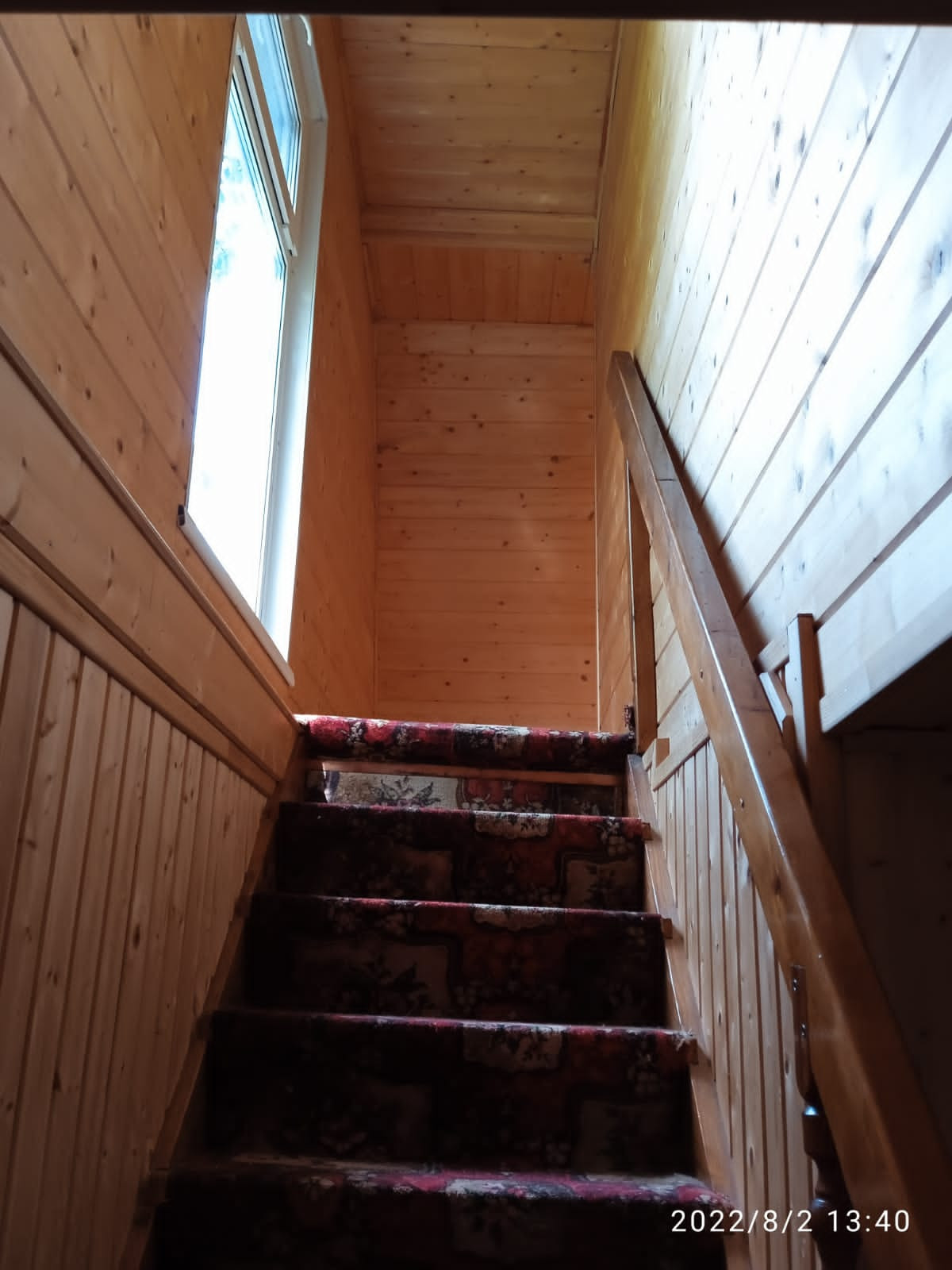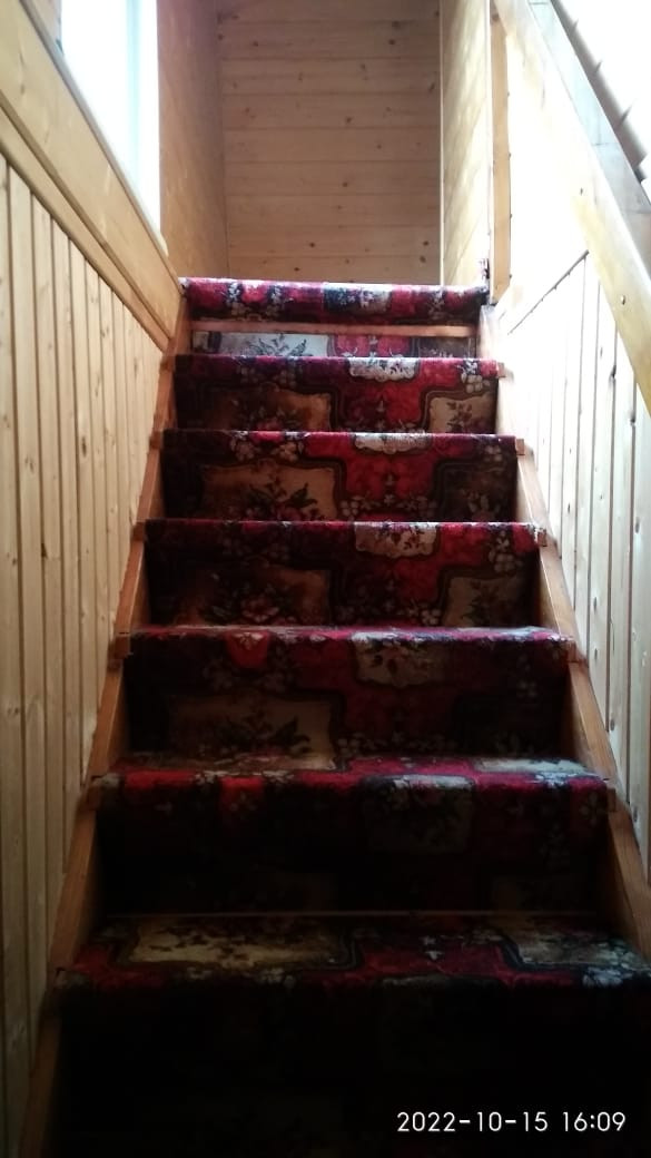 Лестница на второй этаж имеет удобный шаг, прочные перила, застелена ковром и ни капельки не скрипит! В дневное время она освещена из окошка, выходящего во внутренний двор с западной стороны.