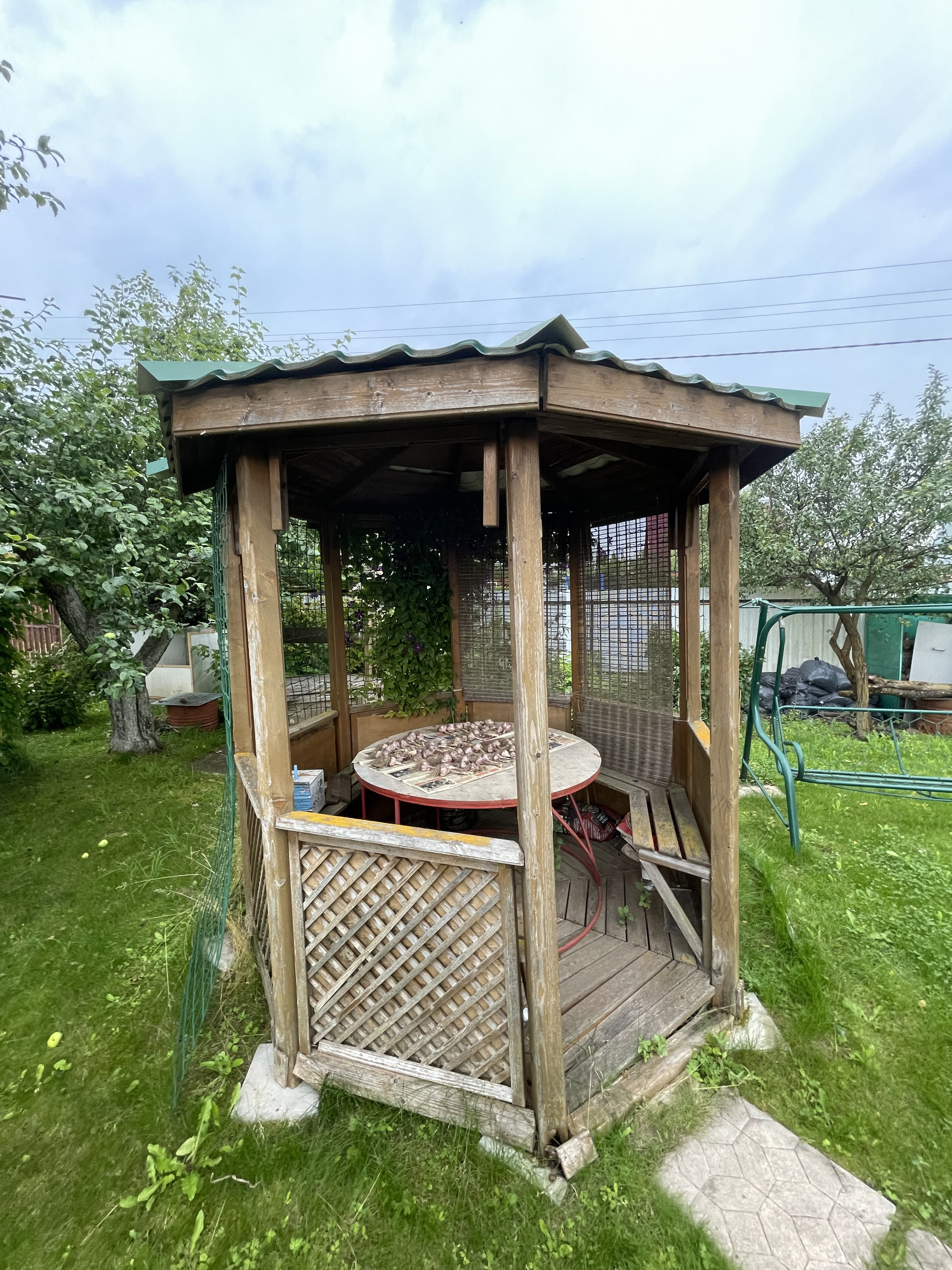 Лет. кухня 20 кв. м., щитовая, крыша покрыта металлом, фундамент столбчатый, окна деревянные, подключено электричество.