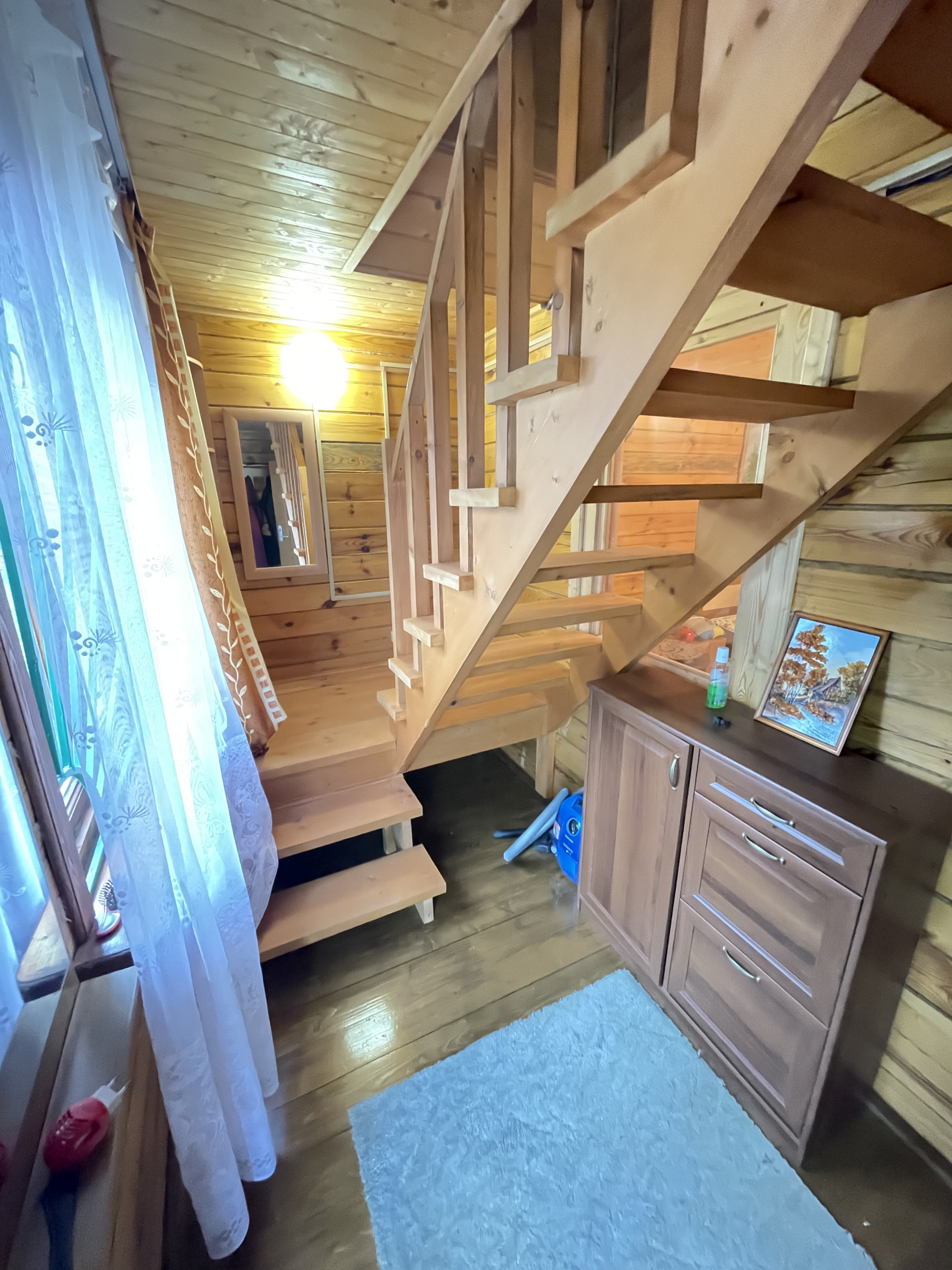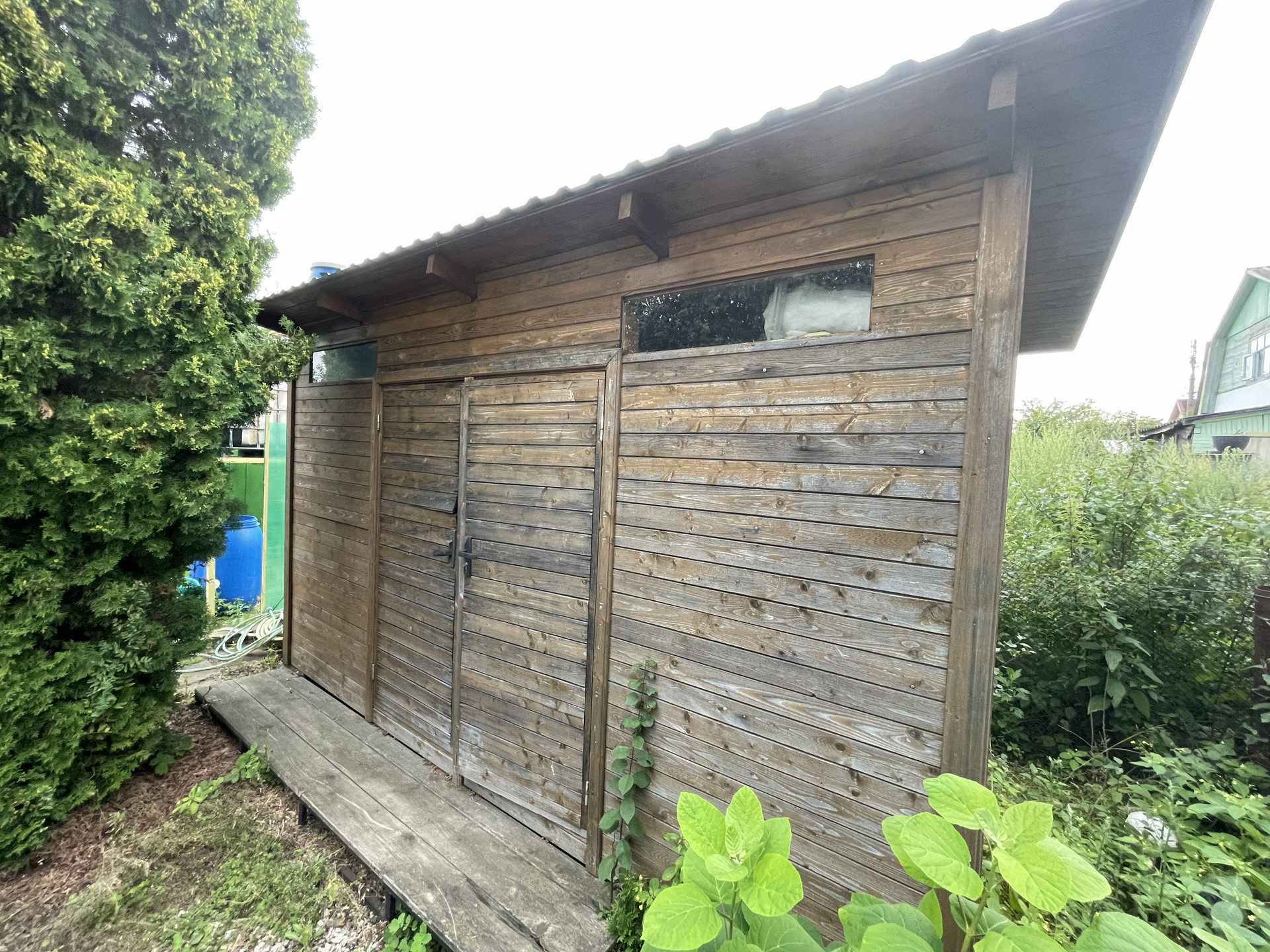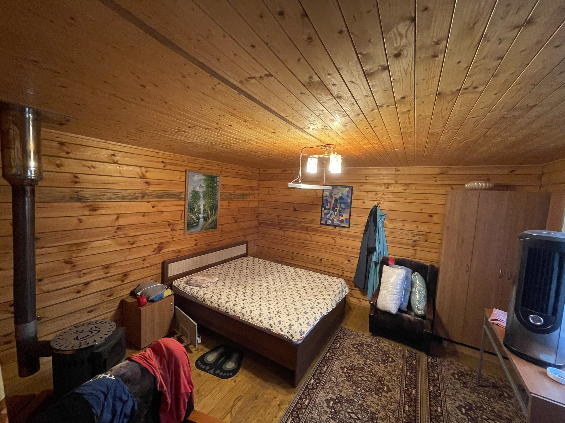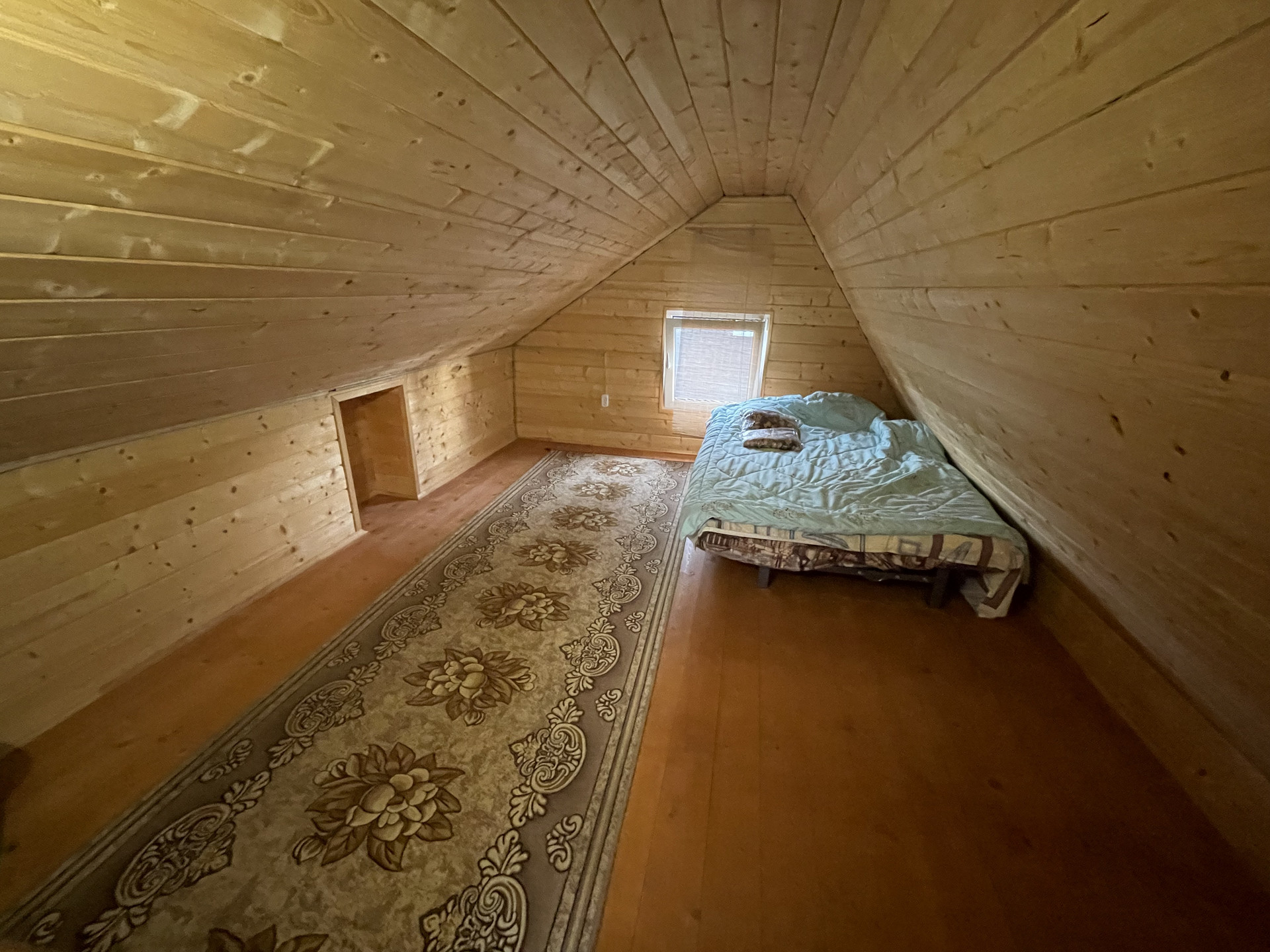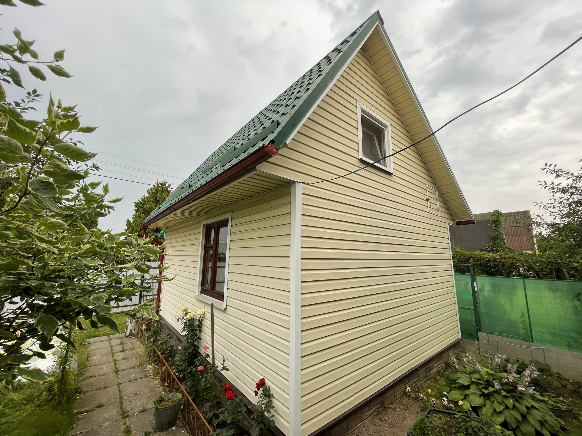 Крыша металлочерепица, окна 2-е деревянные и ПВХ, фундамент – плита, снаружи дом обит сайдингом, внутренняя отделка - вагонка, деревянная лестница. Дом полностью готов к сезонному проживанию, планировка 1 эт.: прихожая с лестницей на 2 эт., комната отдыха с печью; 2 эт. одна комнат. Подключен свет 5 кВт с разводкой по дому, установленный эл. обогреватели, ТВ антенна.