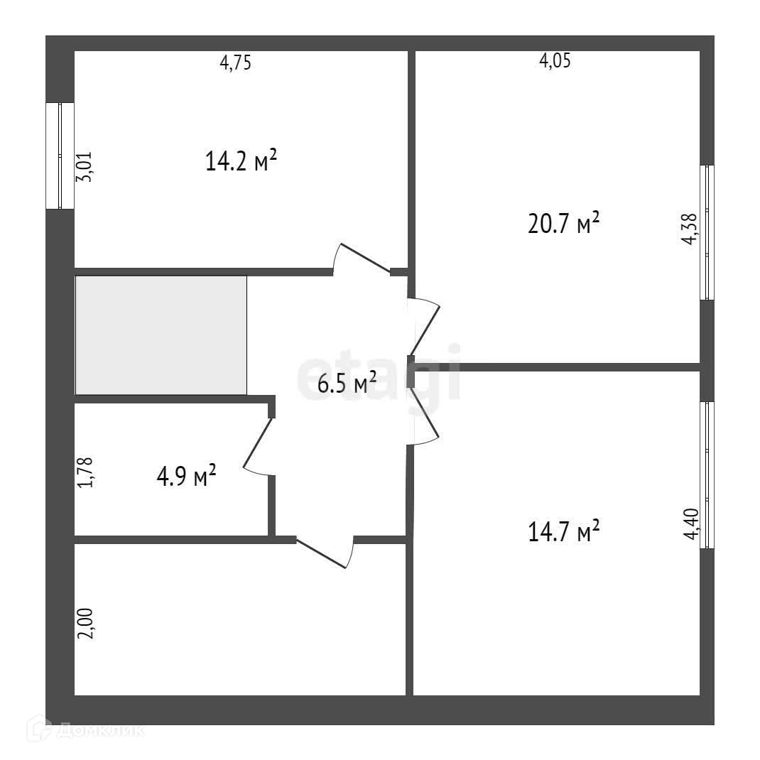 Второй этаж: три комнаты- 14,2 м2, 14,7м2, 20,7м2, санузел 9,5 м2, гардероб 4,9 м2, холл 6,5 м2.