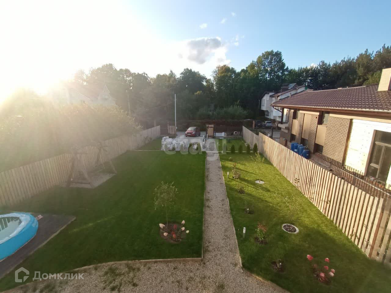 Участок огорожен, парковка для 2-3 авто. Также на участке оборудовано место под мангал, бассейн.