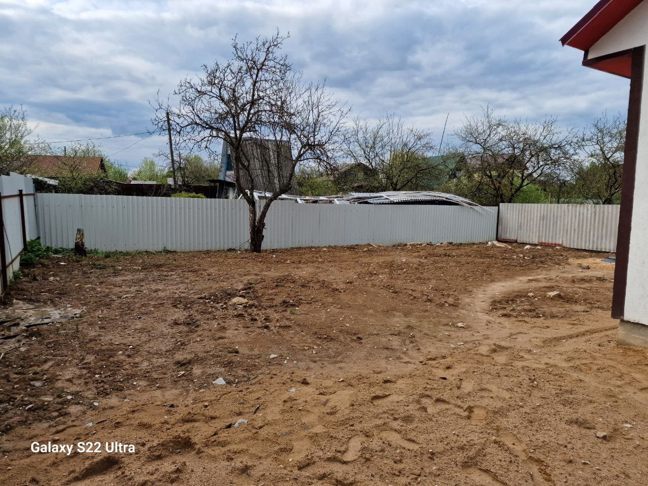 Площадь участка — 4,5 соток. Участок ровный, правильной формы. Забор из профлиста по всему периметру.