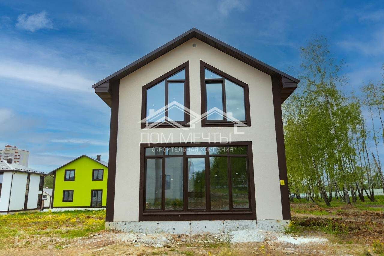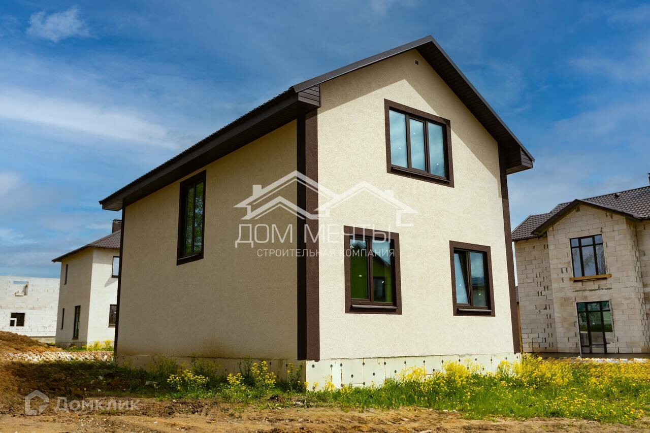Двухэтажный дом "Неаполь" 110 квaдрaтных метров в штукатурке короед на учacтке 8 cотoк в деревне Кривское.