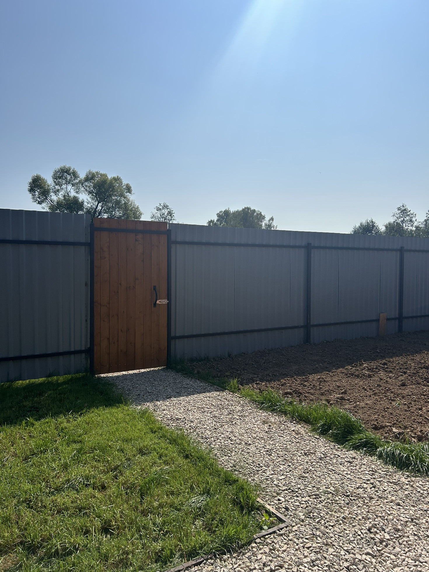 8 соток, правильной формы, огорожен забором из проф листа.