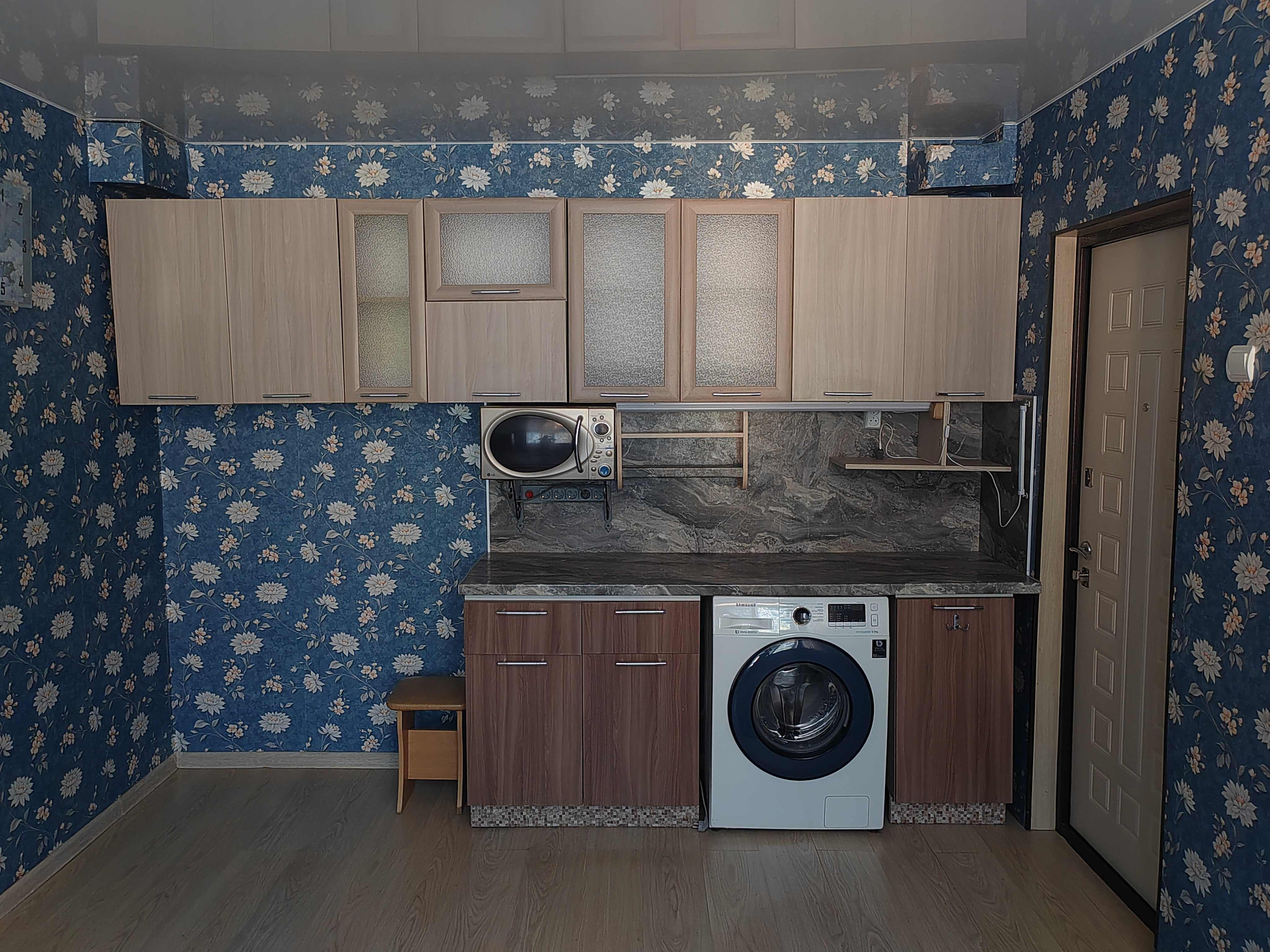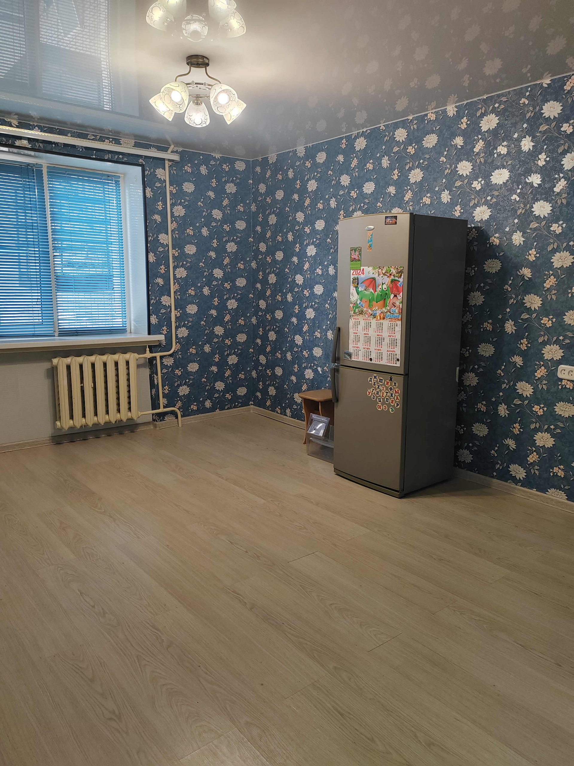 В комнате остаётся кухонный гарнитур, холодильник, стиральная машина