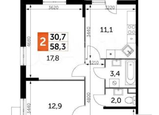 Общая площадь: 58.3 м2