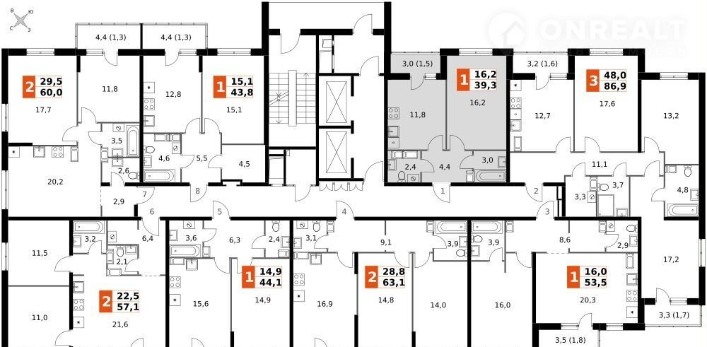 Общая площадь 39.3 м2