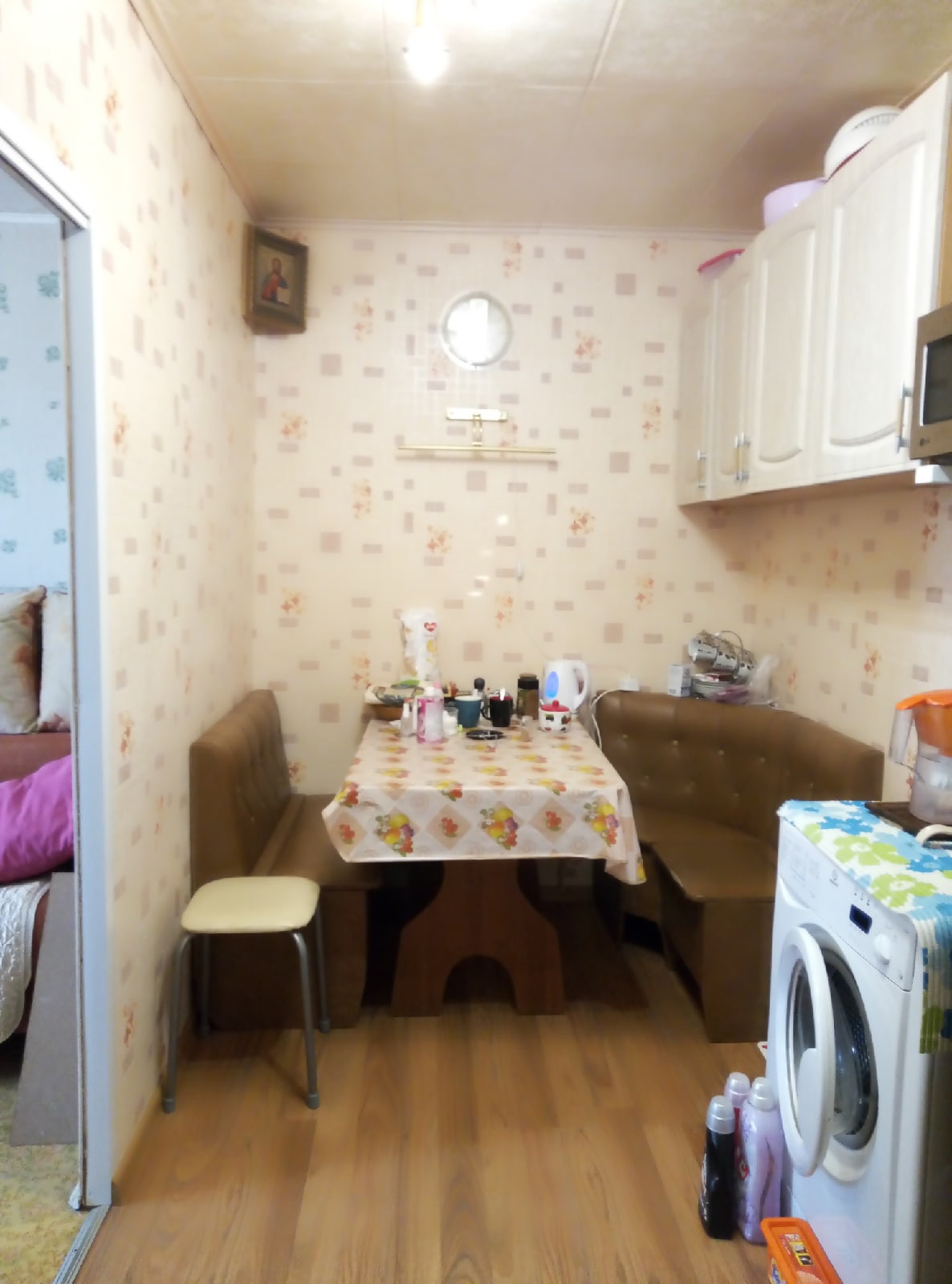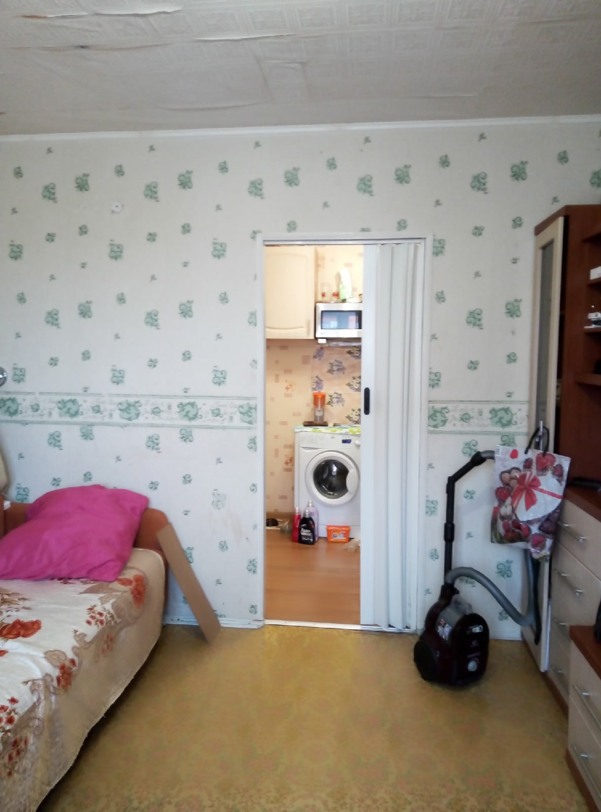 Квартира в хорошем состоянии. Общая площадь 38 кв.м., комната 12 кв.м. совмещенная с кухней 6 кв.м., вторая отдельная комната 12 кв.м.