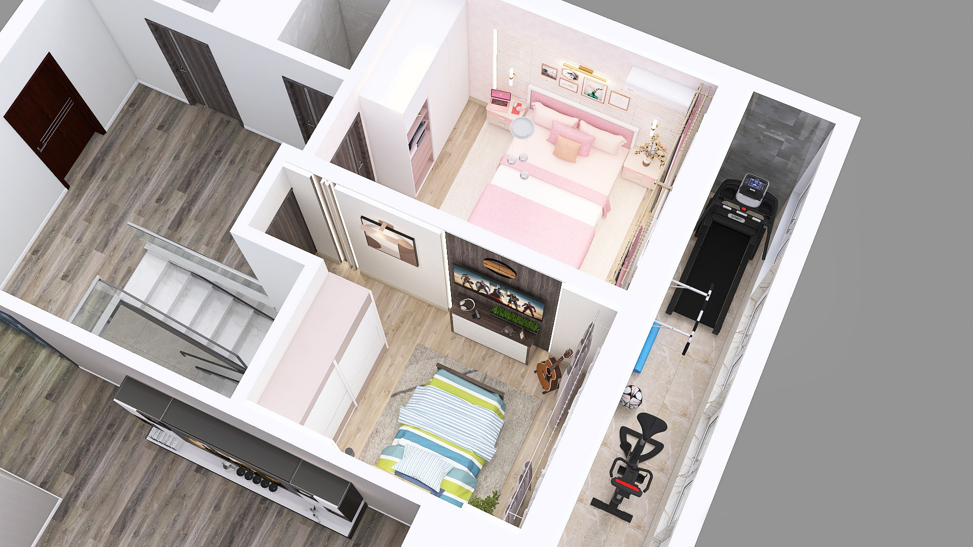 Квартира расположена на 19м и 20м этажах с прекрасными видами на лесной массив и городской пейзаж. Оба уровня квартиры идентичны друг другу с минимальным количеством несущих стен, что существенно расширяет горизонт фантазий для планировки. Объект недвижимости спроектирован как единое целое, но, при этом, имеет два независимых входа/выхода, что позволяет разделить уровни на 2 отдельные квартиры площадью по 81 м кв каждая и сделать их абсолютно обособленными.