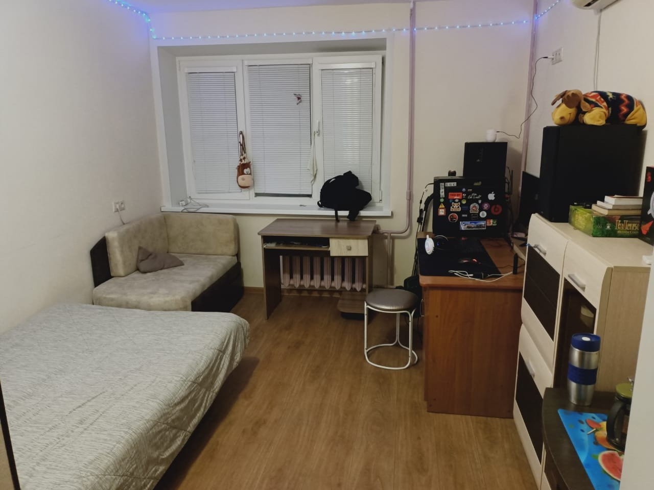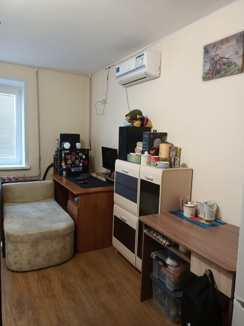 Продам комнату в общежитии, площадь -17,8 кв. м., в отличном состоянии, после ремонта, стены выровнены, окно ПВХ, установлены жалюзи, напольное покрытие новое, установлен кондиционер. Мебель и техника остаётся, заходи и живи!