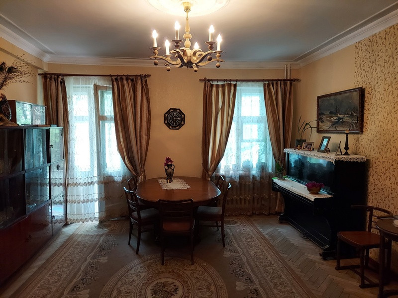 Продается 5 комнатная 2-х уровневая квартира Сталинка в г. Обнинске, пр. Ленина 3/5, на 2 этаже. Кирпичный дом в Старом городе. Общая площадь 126,8 м², жилая 90 м² (комнаты изолированные 23,3 м², 13,1 м², 22,7 м², 18,2,3 м² и 12,7 м²), кухня 12,4 м². Высокие потолки - 3 метра, окна деревянные (качественные). Санузел раздельный. 2 балкона. Просторная прихожая 15,6 м². На первом этаже отдельный вход с улицы. Квартира светлая, просторная, одна на этаже. Удобная стоянка. Рядом всё необходимое: сады, школы, гимназия, магазины, теннисный корт. Удобная планировка окна на разные стороны дома. Во дворе много цветов и деревьев, строится храм. Тихо и спокойно. Развитая инфраструктура района.