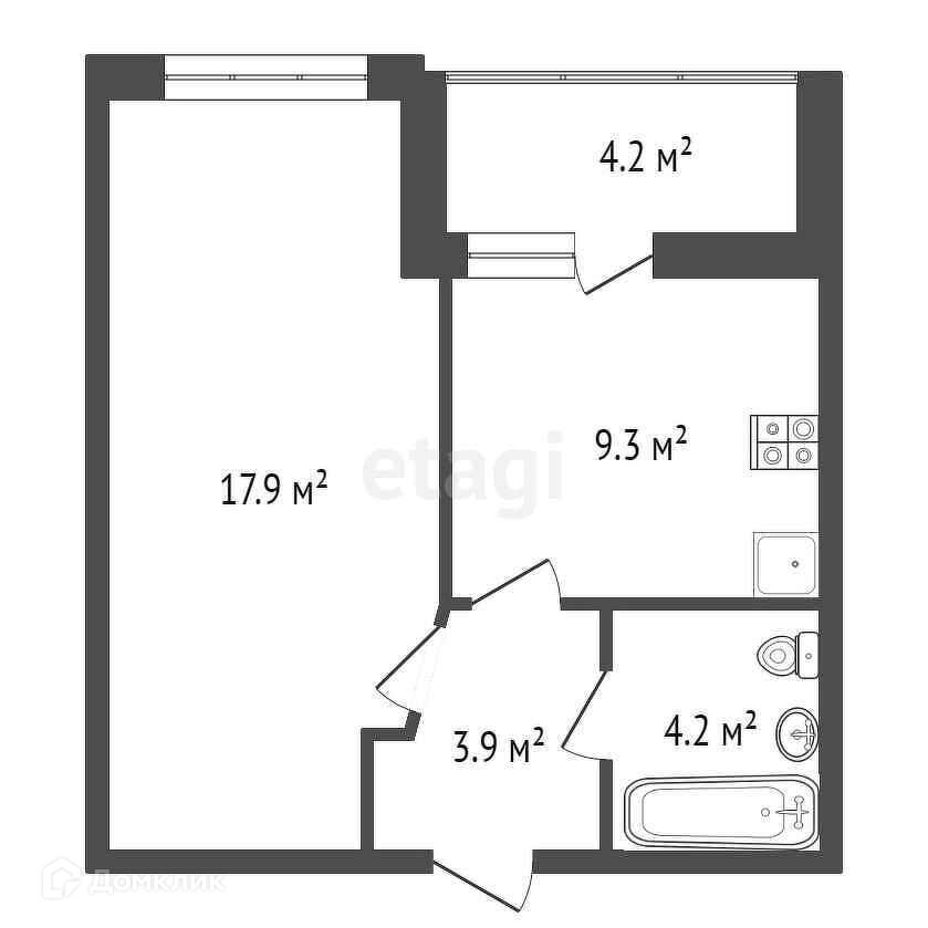 - кухня 9,3 кв. м с выходом на большую лоджию 4,2 кв. м;