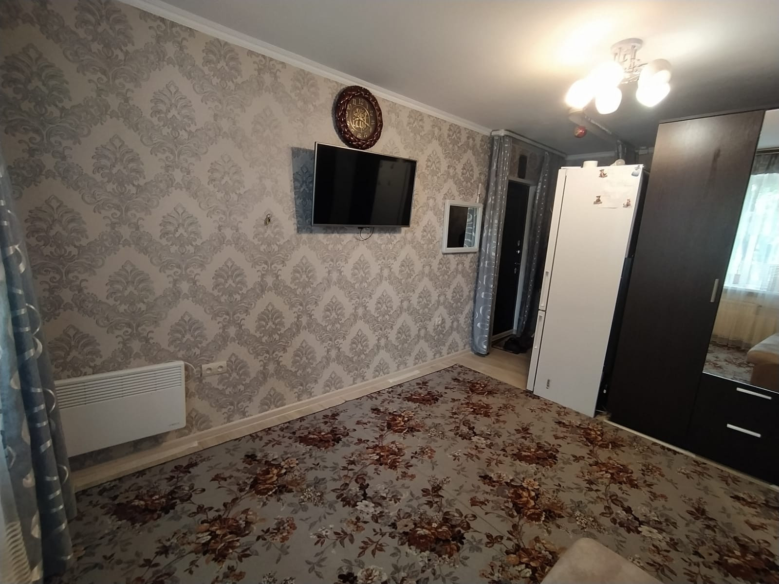 В комнате сделан хороший косметический ремонт ( на полу ламинат, новое пластиковое окно, заменена входная дверь). В комнате остаётся шкаф для одежды и диван. Места общего пользования содержаться в чистоте.